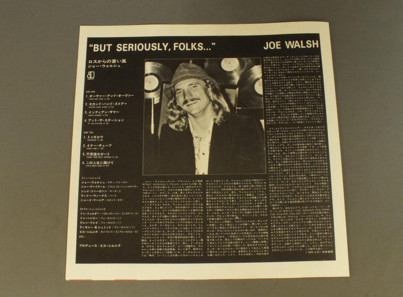 JOE WALSHジョー・ウォルシュ/BUT SERIOUSLY. FOLKS…ロスからの蒼い風 P1039Y 製造国:日本盤 / Media:LP外観:EX+盤の状態:EX帯:EX+ 価格(税込):¥1,320(売約済) 送料 7inch:定形外郵便 360円~LP:定形外郵便 660円~送料は、注文の最終画面で確認頂けます。 > > JOE WALSH/BUT SERIOUSLY. FOLKS… 外観 (EX+)特記事項:特記なし。外観EX+の共通説明:中古としては美品、一見してきれいでダメージが軽微。シミ、ヨゴレ、スレ有っても僅か~少し。 盤の状態 (EX)特記事項:薄いスリキズ・スレ軽くある感じ。殆どが軽微なものの様子です。盤EXの共通説明:盤面のスリキズが薄いものが少し~軽度 音に出そうなものは無いように見える(軽微なソフトティック音は除く)。 帯の状態 (EX+):特記なし。 Tweet それぞれの画像をクリックすると、大きい写真が見られます こちらの商品もお勧めです 1,650円 SERGIO MENDES & BRAZIL `66セルジオ・メンデスとブラジル66 / LOOK AROUNDルック・アラウンド 770円 REO SPEED WAGONREOスピード・ワゴン / REO SPEED WAGON LIVEREO ライブ 嵐の中へ 770円 SNEAKERスニーカー / LOOSE IN THE WORLDルーズ・イン・ザ・ワールド 990円 DONNY & MARIE / WINNING COMBINATION 990円 SANTANAサンタナ / AMIGOSアミーゴ !(同胞) 550円 GRAND FUNK RAILROADグランド・ファンク・レイルロード / CAUGHT IN THE ACTグランド・ファンク・ツアー75 1,320円 DARYL HALL & JOHN OATESダリル・ホールとジョン・オーツ / X-STATICモダン・ポップ 550円 CHICAGOシカゴ / GREAT CHICAGO栄光のシカゴ