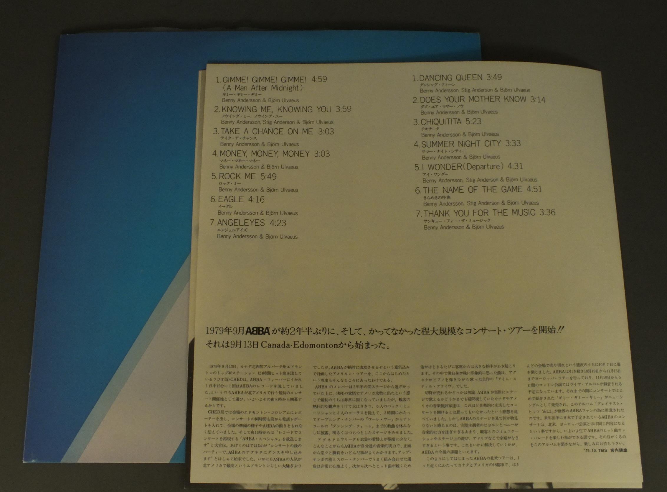 ABBAアバ/ABBA GREATEST HITS VOL2アバ・グレイテスト・ヒッツVOL2 DSP5113 製造国:日本盤 / Media:LP外観:EX盤の状態:EX帯:EX+ 価格(税込):¥440(売約済) 送料 7inch:定形外郵便 360円~LP:定形外郵便 660円~送料は、注文の最終画面で確認頂けます。 > > ABBA/ABBA GREATEST HITS VOL2 外観 (EX)特記事項:特記なし。外観EXの共通説明:ダメージが限定的。中古品としては保存状態がよい方。シミ、ヨゴレ、スレ 少し~軽度。 盤の状態 (EX)特記事項:薄いスリキズ・スレ軽くある感じ。軽微なものの様子です。盤EXの共通説明:盤面のスリキズが薄いものが少し~軽度 音に出そうなものは無いように見える(軽微なソフトティック音は除く)。 帯の状態 (EX+):特記なし。 Tweet それぞれの画像をクリックすると、大きい写真が見られます こちらの商品もお勧めです 440円 BAY CITY ROLLERSベイ・シティ・ローラーズ / WOULDN`T YOU LIKE IT ?青春のアイドル 1,320円 WHAMワム / MAKE IT BIGメイク・イット・ビッグ 1,210円 BEE GEESビー・ジーズ / SOUNDTRACK STAYING ALIVE映画 ステイン・アライヴ 1,210円 DUKESデュークス / 1st ALBUM運命の旅立ち 990円 ABBAアバ / ARRIVALアライバル 990円 BEE GEESビー・ジーズ / SPIRITS HAVING FLOWN失われた愛の世界 770円 ABBAアバ / GREATEST HITS VOL.2グレイテスト・ヒッツVOL.2 770円 MARC BOLANマーク・ボラン / YOU SCARE ME TO DEATH霊魂の叫び