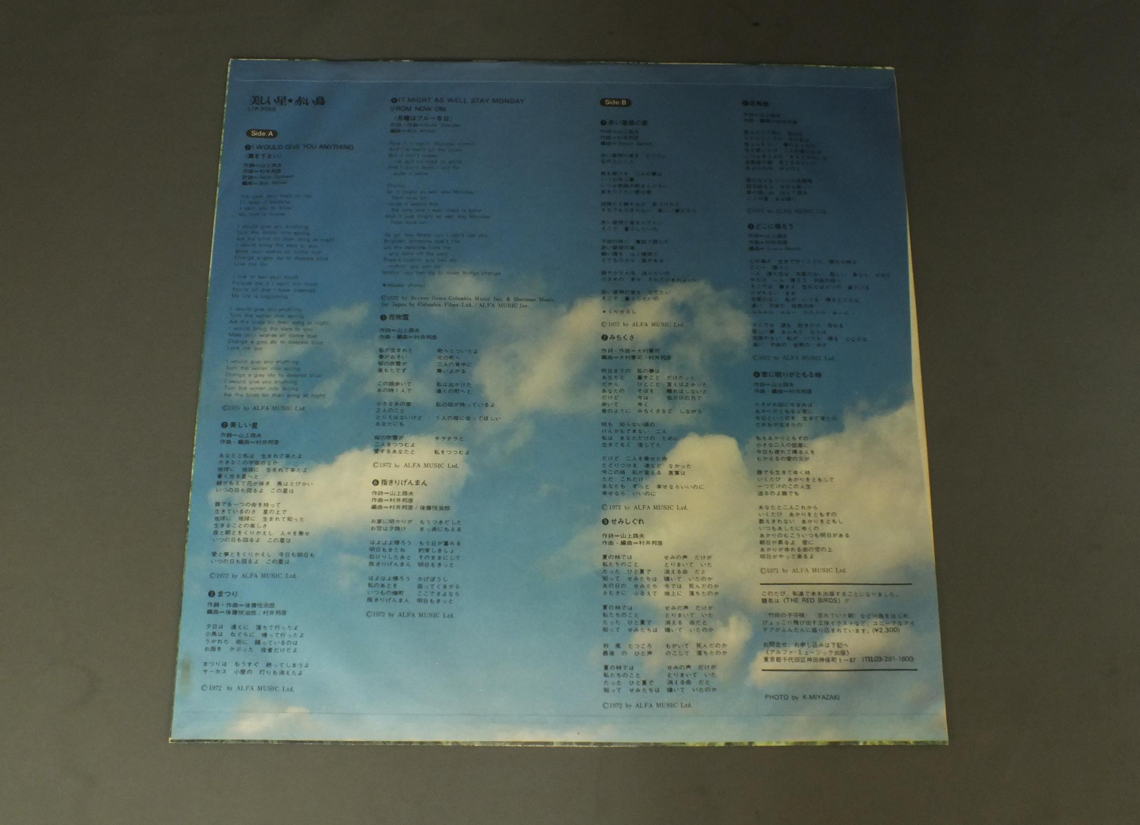 RED BIRDS赤い鳥/BEAUTIFUL STARS美しい星 LTP9068 製造国:日本盤 / Media:LP外観:EX+盤の状態:EX+ 価格(税込):¥1,650(売約済) 送料 7inch:定形外郵便 360円~LP:定形外郵便 660円~送料は、注文の最終画面で確認頂けます。 > > RED BIRDS/BEAUTIFUL STARS 外観 (EX+)特記事項:インナ−に抜けあり。外観EX+の共通説明:中古としては美品、一見してきれいでダメージが軽微。シミ、ヨゴレ、スレ有っても僅か~少し。 盤の状態 (EX+)特記事項:薄いスリキズ・スレ少し。一見してきれいな状態です。盤EX+の共通説明:盤面の極薄いスリキズ、スレ少し程度 音に出そうなものは無いように見える(極軽微なソフトティック音は除く)。 Tweet それぞれの画像をクリックすると、大きい写真が見られます こちらの商品もお勧めです 2,200円 TAKUROU YOSHIDA吉田拓郎 / ON STAGEオン・ステージ 770円 SHIGERU IZUMIYA泉谷しげる / GOLD RUSH黄金狂時代 3,080円 UTANOICHI唄の市 / 2nd ALBUMセカンド 1,320円 HAKO YAMAZAKI山崎ハコ / AI IRO NO UTA藍色の詩 2,420円 ALL JAPAN FOLK JAMBORRE全日本フォークジャンボリー / LIVE 19711971 (出逢いの記録 その燃焼) 1,210円 NOBUYASU OKABAYASHI岡林信康 / OOINARU ISAN大いなる遺産 1,980円 FOLK CRUSADERSフォークル・クルセダーズ / FOLK CRUSADERS FAREWELL CONCERTフォークルさよならコンサート 1,320円 TAKUROU YOSHIDA吉田拓郎 / ON STAGEオン・ステージ