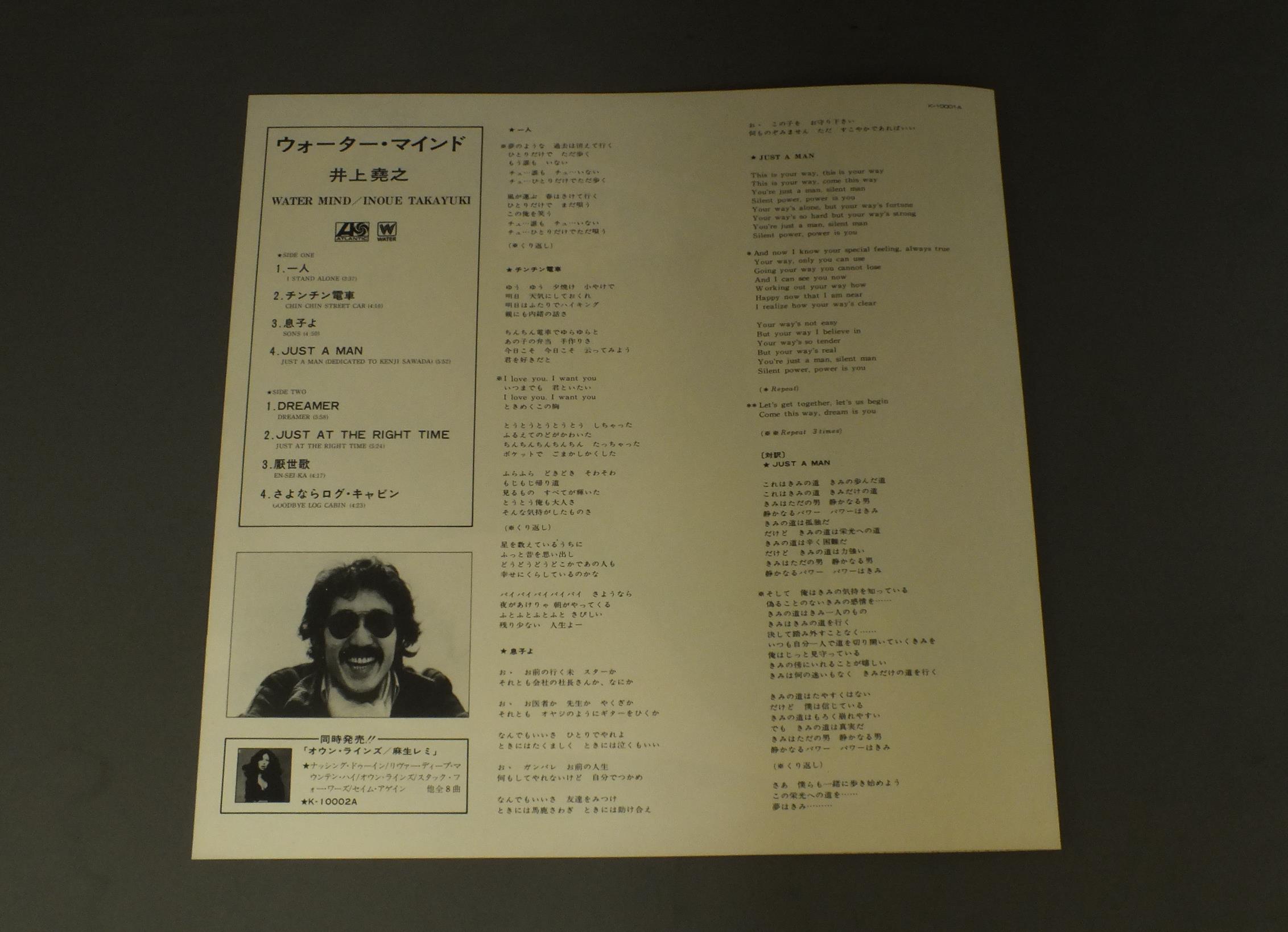 INOUE TAKAYUKI井上堯之/WATER MIND K10001A 製造国:日本盤 / Media:LP外観:EX+盤の状態:EX 価格(税込):¥1,980(売約済) 送料 7inch:定形外郵便 360円~LP:定形外郵便 660円~送料は、注文の最終画面で確認頂けます。 > > INOUE TAKAYUKI/WATER MIND 外観 (EX+)特記事項:特記なし。外観EX+の共通説明:中古としては美品、一見してきれいでダメージが軽微。シミ、ヨゴレ、スレ有っても僅か~少し。 盤の状態 (EX)特記事項:薄いスリキズ・スレ軽くある感じ。軽微なものの様子です。盤EXの共通説明:盤面のスリキズが薄いものが少し~軽度 音に出そうなものは無いように見える(軽微なソフトティック音は除く)。 Tweet それぞれの画像をクリックすると、大きい写真が見られます こちらの商品もお勧めです 660円 KENICHI HAGIWARA萩原健一 / NADJAナジャ 770円 MOTOHARU SANO佐野元春 / VISITORS 1,210円 YUKO OTOMO大友裕子 / KIZUNA絆(きずな) 770円 KOJI KIKKAWA吉川晃司 / INNOCENT SKYイノセント スカイ 770円 KOICHI MORITA & TOP GALLANTS森田公一 & トップギャラン / BEST HITSヒット全曲集 770円 IZUMI YUKIMURA雪村いづみ / I`M GETTING MY ACT TOGETHER & TAKING IT ON ROADミュージカル`旅立て女たち` 440円 MARI AMACHI天地真理 / BRIDGE OF A RAINBOW虹をわたって 770円 TULIPチューリップ / TULIP BEST心の旅