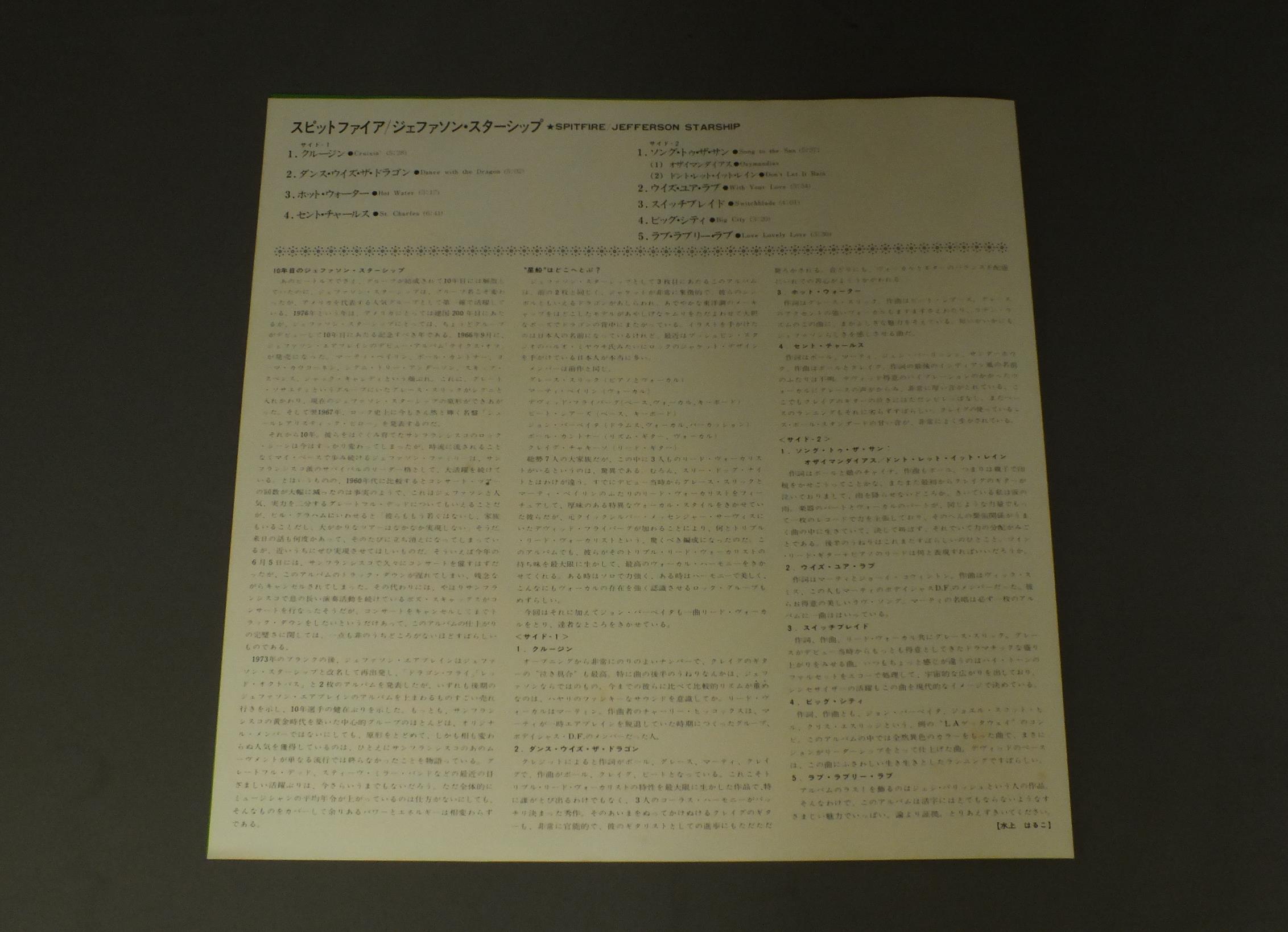 JEFFERSON STARSHIPジェファーソン・スターシップ/SPITFIREスピットファイア RVP6087 製造国:日本盤 / Media:LP外観:EX+盤の状態:EX 価格(税込):¥330(売約済) 送料 7inch:定形外郵便 360円~LP:定形外郵便 660円~送料は、注文の最終画面で確認頂けます。 > > JEFFERSON STARSHIP/SPITFIRE 外観 (EX+)特記事項:特記なし。外観EX+の共通説明:中古としては美品、一見してきれいでダメージが軽微。シミ、ヨゴレ、スレ有っても僅か~少し。 盤の状態 (EX)特記事項:薄いスリキズ・スレ軽くある感じ。軽微なものの様子です。盤EXの共通説明:盤面のスリキズが薄いものが少し~軽度 音に出そうなものは無いように見える(軽微なソフトティック音は除く)。 Tweet それぞれの画像をクリックすると、大きい写真が見られます こちらの商品もお勧めです 990円 GRAND FUNKグランド・ファンク・レイルロード / WE`RE AN AMERICAN BANDECS80665アメリカン・バンド 1,320円 HEARTハート / BEBE LE STRANGEべべ・ル・ストレンジ 770円 SANTANAサンタナ / CARAVANSERAIキャラバンサライ 1,650円 LIGHT HOUSEライトハウス / SUNNY DAYSサニー・デイズ 770円 REO SPEED WAGONREOスピード・ワゴン / REO SPEED WAGON LIVEREO ライブ 嵐の中へ 1,320円 CATE BROTHERS BANDケイト・ブラザーズ・バンド / RENDEZVOUSランデヴー 880円 TOTOトト / HYDRAハイドㇻ 770円 5TH DIMENSIONフィフス・ディメンション / THE BESTベスト