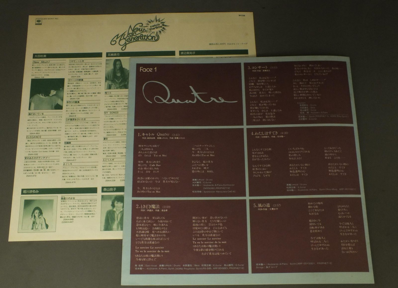 RAJIEラジ/QUATREキャトル 25AH877 製造国:日本盤 / Media:LP外観:EX+盤の状態:EX+ 価格(税込):¥3,230(売約済) 送料 7inch:定形外郵便 360円~LP:定形外郵便 660円~送料は、注文の最終画面で確認頂けます。 > > RAJIE/QUATRE 外観 (EX+)特記事項:特記なし。外観EX+の共通説明:中古としては美品、一見してきれいでダメージが軽微。シミ、ヨゴレ、スレ有っても僅か~少し。 盤の状態 (EX+)特記事項:極薄いスリキズ・スレ少し。一見してきれいな状態です。盤EX+の共通説明:盤面の極薄いスリキズ、スレ少し程度 音に出そうなものは無いように見える(極軽微なソフトティック音は除く)。 Tweet それぞれの画像をクリックすると、大きい写真が見られます こちらの商品もお勧めです 440円 KUWATA BAND桑田バンド / NIPPON NO ROCK BAND 880円 TULIPチューリップ / LOVE MAP SHOPラヴ・マップ・ショップ 990円 MASAAKI SAKAI堺正章 / SOLITUDEひとりぼっちのマチャアキ 770円 BOBBY OKAMOTO & THE INDIAN SUMMERボビー岡本&インディアン・サマー / INDIAN SUMMERインディアン・サマー 990円 TAOタオ / FAR EAST 1,650円 MIEKO HIROTA - KAORU CHIGA - NAOMI CHIAKI弘田三枝子-千賀かほる-ちあきなおみ / GOLDEN ALBUMポップス三人娘 ゴールデン・アルバム 990円 AMII OZAKI尾崎亜美 / POINTS 1,320円 SHOGO HAMADA & THE FUSE浜田省吾 / CLUB SURFBOUND