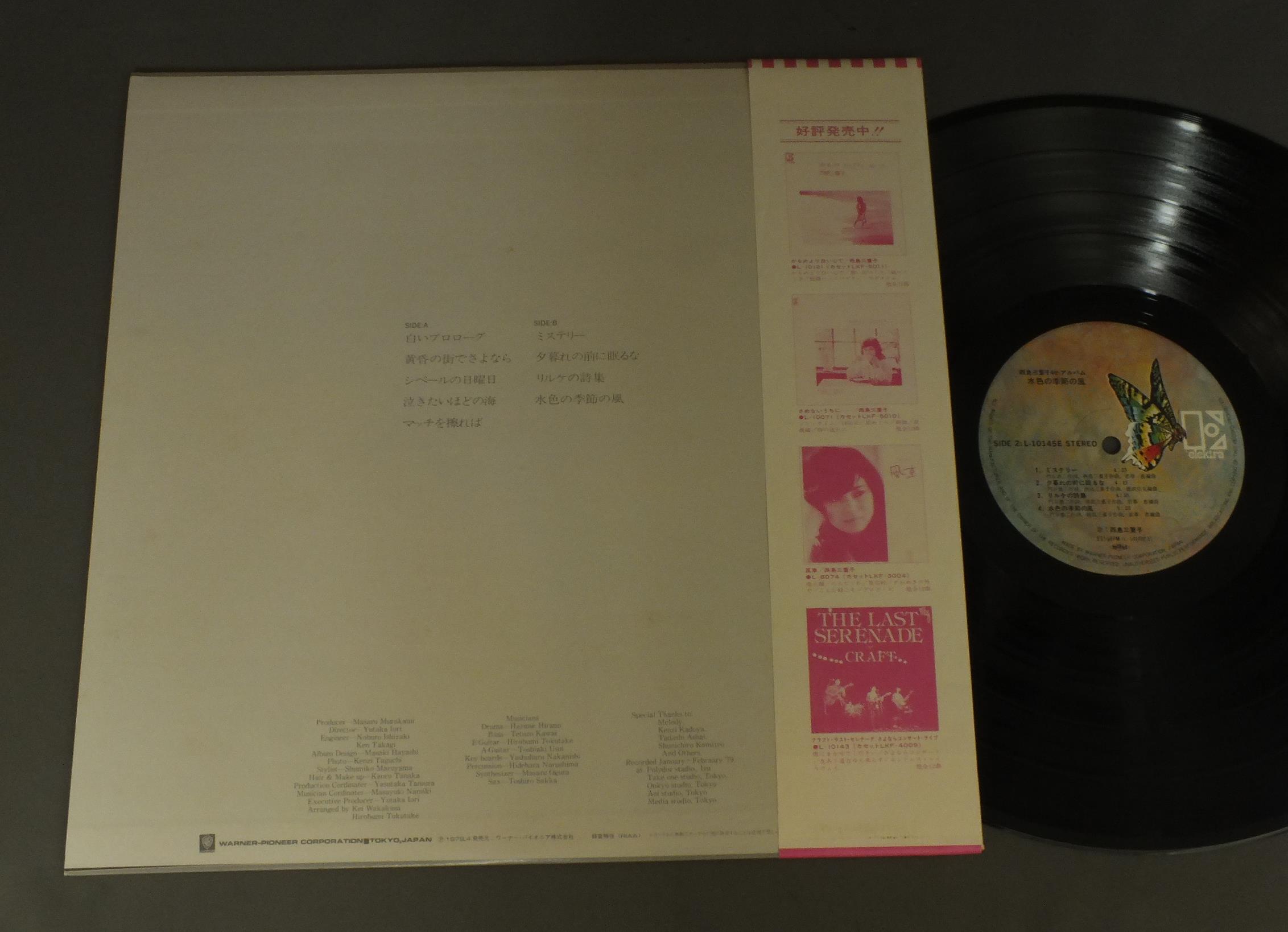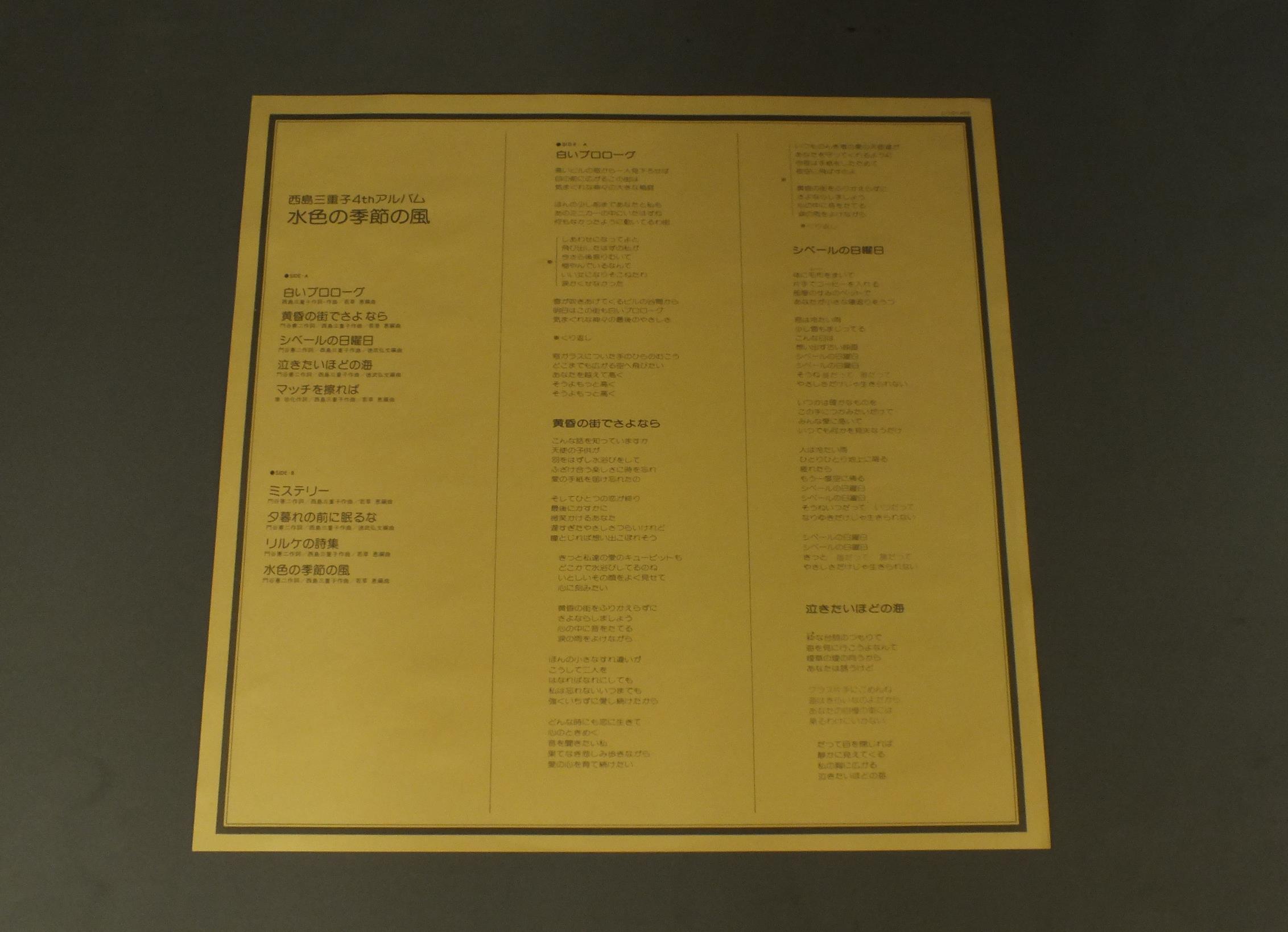 西島三重子/水色の季節の風 L10145E 製造国:日本盤 / Media:LP外観:EX+盤の状態:EX帯:EX+ 価格(税込):¥1,320(売約済) 送料 7inch:定形外郵便 360円~LP:定形外郵便 660円~送料は、注文の最終画面で確認頂けます。 > > / 外観 (EX+)特記事項:特記なし。外観EX+の共通説明:中古としては美品、一見してきれいでダメージが軽微。シミ、ヨゴレ、スレ有っても僅か~少し。 盤の状態 (EX)特記事項:薄いスリキズ・細かい表面スレ軽くある感じです。プチ出そうな所は少し。軽微なものが中心の様子です。盤EXの共通説明:盤面のスリキズが薄いものが少し~軽度 音に出そうなものは無いように見える(軽微なソフトティック音は除く)。 帯の状態 (EX+):特記なし。 Tweet それぞれの画像をクリックすると、大きい写真が見られます こちらの商品もお勧めです 770円 KENJI SAWADA沢田研二 / OMOIKKIRI KIZANA JINSEI思いきり気障な人生 770円 YOSUI INOUE井上陽水 / YOSUI 2 ( SENTIMENTAL )陽水?センチメンタル 550円 HIDEKI SAIJO西城秀樹 / KOU NO BOUSOU恋の暴走 770円 SNAKEMAN SHOWスネークマン・ショー / SNAKEMAN SHOW-NO MORE FIGHTスネークマン・ショー-戦争反対 770円 TAKURO YOSHIDA吉田拓郎 / ASUNI MUKATTE HASHIRE明日に向って走れ 770円 FINGER FIVEフィンガー・ファイブ / GOLDEN HITS 990円 TAKURO YOSHIDAよしだたくろう / BEST COLLECTIONたくろう ベスト・コレクション 1,320円 MISAKO HONJOH本城美沙子 / FORESIGHT