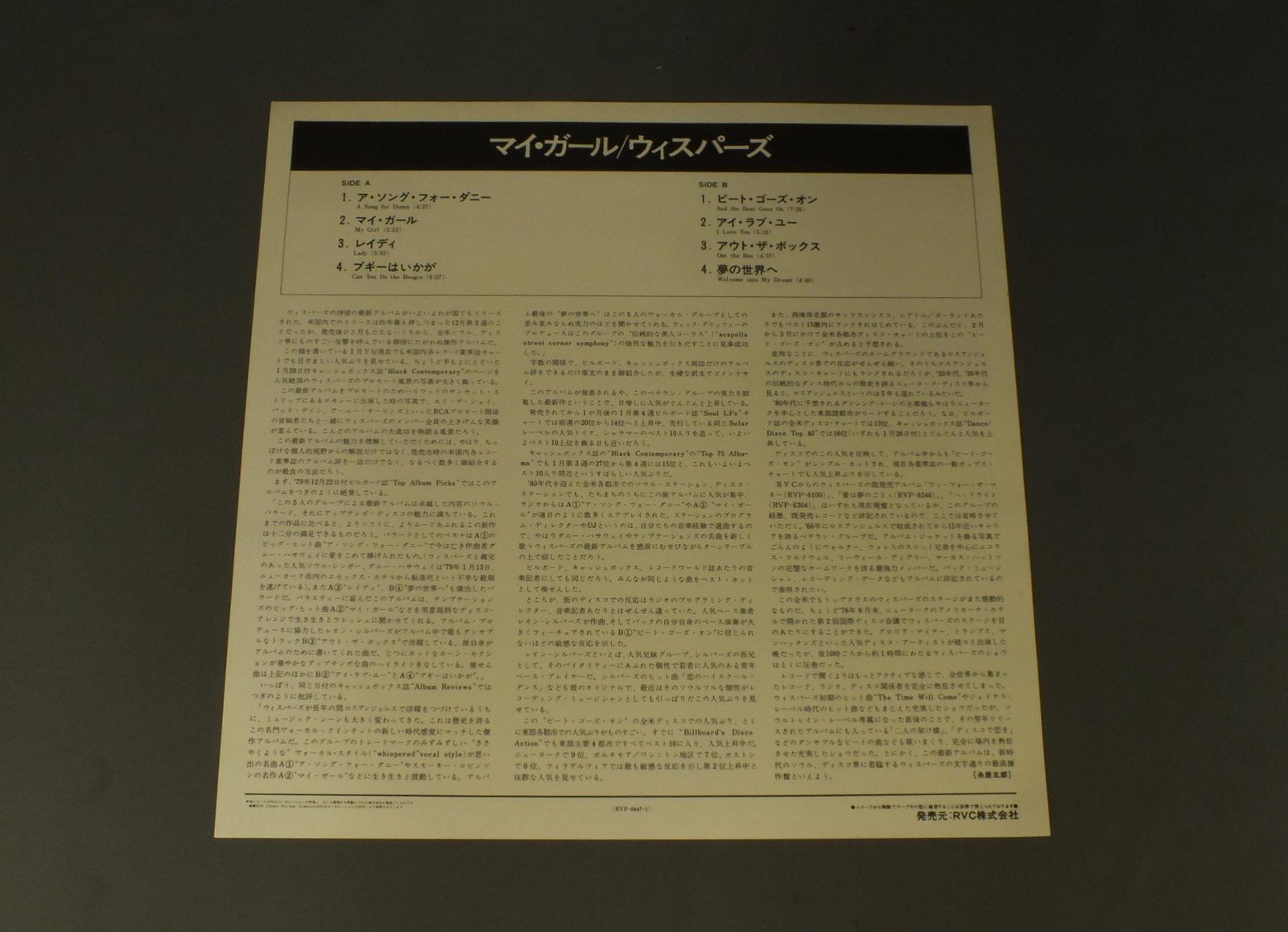 WHISPERSウィスパーズ/MY GIRLマイ・ガール RVP6447 製造国:日本盤 / Media:LP外観:EX盤の状態:EX 価格(税込):¥1,100(売約済) 送料 7inch:定形外郵便 360円~LP:定形外郵便 660円~送料は、注文の最終画面で確認頂けます。 > > WHISPERS/MY GIRL 外観 (EX)特記事項:ジャケ表面にシミ外観EXの共通説明:ダメージが限定的。中古品としては保存状態がよい方。シミ、ヨゴレ、スレ 少し~軽度。 盤の状態 (EX)特記事項:極薄いスリキズ・スレ少し。一見してきれいな状態です。盤EXの共通説明:盤面のスリキズが薄いものが少し~軽度 音に出そうなものは無いように見える(軽微なソフトティック音は除く)。 Tweet それぞれの画像をクリックすると、大きい写真が見られます こちらの商品もお勧めです 1,210円 TAVARESタバレス / WORDS AND MUSICワーズ&ミュージック 1,210円 TEMPTATIONSテンプテーションズ / TO BE CONTINUEDトゥ・ビー・コンティニュード 990円 ASHFORD & SIMPSONアシュフォード&シンプソン / HIGH-RISEハイ・ライズ 880円 DIANA ROSSダイアナ・ロス / LIVE AT CAESARS PALACEライブ・アット・シーザース・パレス 1,320円 CAROL DOUGLASキャロル・ダグラス / CAROL DOUGLAS ALBUM恋の診断書-恋のハリケーン 1,210円 FOUR TOPSフォー・トップス / MAGICマジック 1,210円 FOUR TOPSフォー・トップス / BACK WHERE I BELONGバック・ホェア・アイ・ビロング 1,210円 DAZZ BANDダズ・バンド / KEEP IT LIVEキープ・イット・ライブ