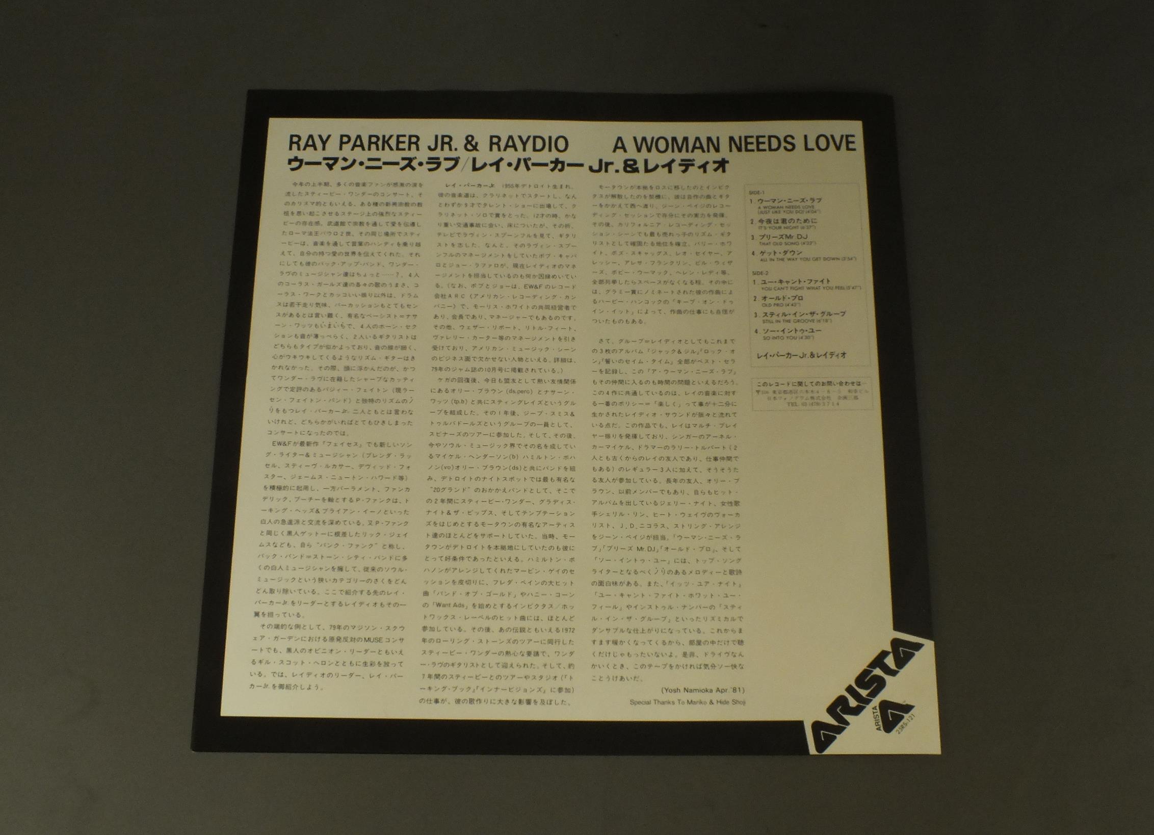 RAY PARKER JR. レイ・パーカーJR/WOMAN NEEDS LOVEウーマン・ニーズ・ラヴ 25RS121 製造国:日本盤 / Media:LP外観:EX+盤の状態:EX帯:EX+ 価格(税込):¥550(売約済) 送料 7inch:定形外郵便 360円~LP:定形外郵便 660円~送料は、注文の最終画面で確認頂けます。 > > RAY PARKER JR. /WOMAN NEEDS LOVE 外観 (EX+)特記事項:特記なし。外観EX+の共通説明:中古としては美品、一見してきれいでダメージが軽微。シミ、ヨゴレ、スレ有っても僅か~少し。 盤の状態 (EX)特記事項:極薄いスリキズ・スレ少し。一見してきれいな状態です。盤EXの共通説明:盤面のスリキズが薄いものが少し~軽度 音に出そうなものは無いように見える(軽微なソフトティック音は除く)。 帯の状態 (EX+):特記なし。 Tweet それぞれの画像をクリックすると、大きい写真が見られます こちらの商品もお勧めです 1,210円 TEMPTATIONSテンプテーションズ / BACK TO BASICSバック・トゥー・ベイシックス 1,210円 SMOKEY ROBINSONスモーキー・ロビンソン / BLAME IT ON LOVE & ALL THE GREAT HITSブレイム・イット・オン・ラブ 440円 PEABO BRYSONピーボ・ブライソン / TAKE NO PRISONERSテイク・ノー・プリズナーズ 880円 GLADYS KNIGHT & THE PIPSグラディス・ナイト&ザ・ピップス / I FEEL A SONGアイ・フィール・ア・ソング 1,320円 CAROL DOUGLASキャロル・ダグラス / CAROL DOUGLAS ALBUM恋の診断書-恋のハリケーン 1,210円 TEMPTATIONSテンプテーションズ / REUNION再会 1,210円 GRANDMASTER FLASHグランドマスター・フラッシュ / SOURCEソース 662円 JOE TEXジョー・テックス / HOLD WHAT YOU`VE GOTホールド・ホワット・ユーヴ・ガット