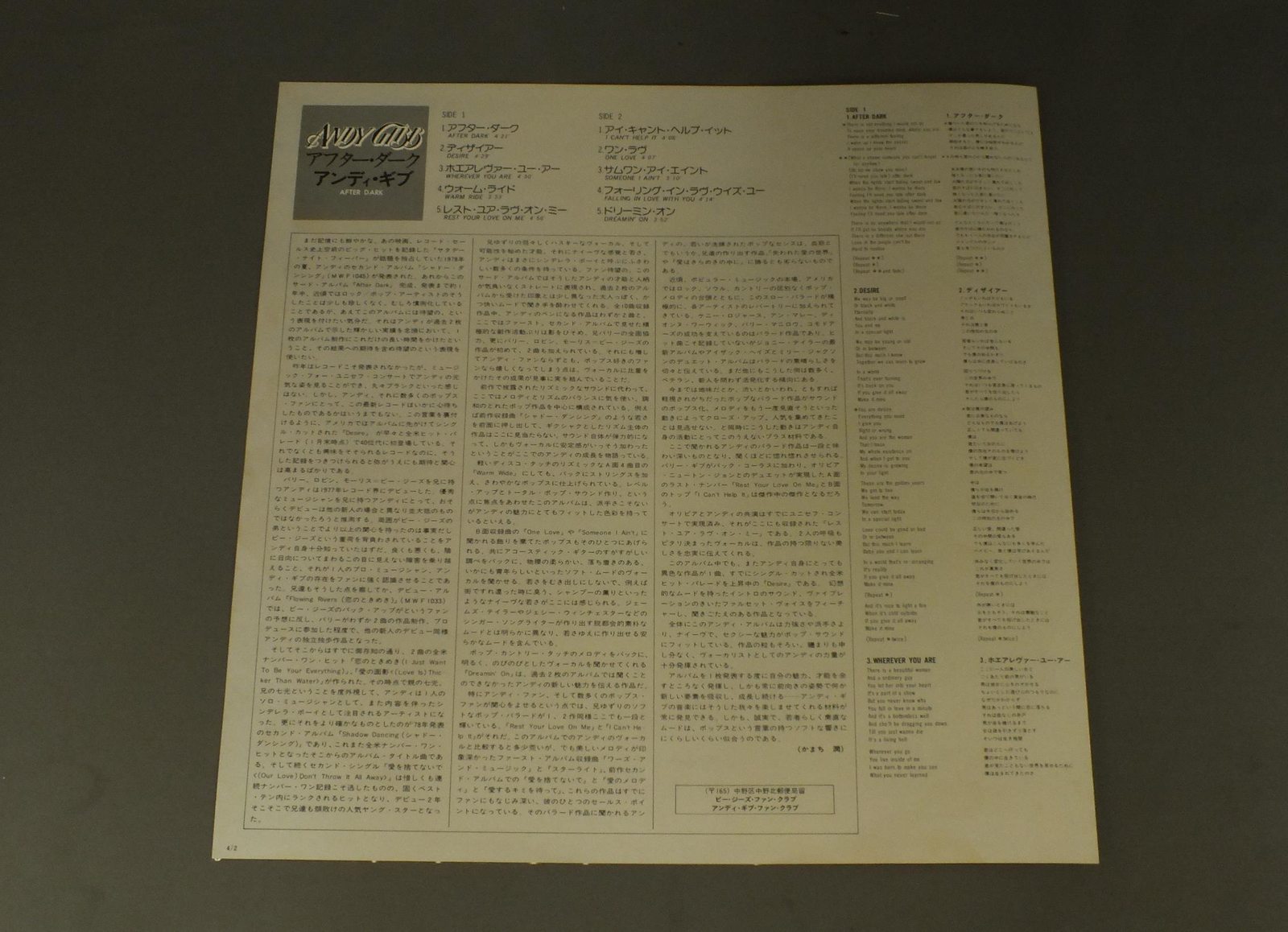 ANDY GIBBアンディ・ギブ/AFTER DARKアフター・ダーク MWF1077 製造国:日本盤 / Media:LP外観:EX+盤の状態:EX+ 価格(税込):¥1,100(売約済) 送料 7inch:定形外郵便 360円~LP:定形外郵便 660円~送料は、注文の最終画面で確認頂けます。 > > ANDY GIBB/AFTER DARK 外観 (EX+)特記事項:特記なし。外観EX+の共通説明:中古としては美品、一見してきれいでダメージが軽微。シミ、ヨゴレ、スレ有っても僅か~少し。 盤の状態 (EX+)特記事項:極薄いスリキズ・スレ少し。一見してきれいな状態です。盤EX+の共通説明:盤面の極薄いスリキズ、スレ少し程度 音に出そうなものは無いように見える(極軽微なソフトティック音は除く)。 Tweet それぞれの画像をクリックすると、大きい写真が見られます こちらの商品もお勧めです 990円 SHAUN CASSIDYショーン・キャシディ / ROOM SERVICEルーム・サーヴィス 770円 ALAN GORRIEアラン・ゴリー / SLEEPLESS NIGHTSスリープレス・ナイト 770円 GARY WRIGHTゲイリー・ライト / TOUCH AND GONEタッチ・アンド・ゴーン 440円 NEIL DIAMONDニール・ダイアモンド / SERENADE永遠のセレナーデ 660円 LARRY FASTラリー・ファースト / ELECTRONIC REALIZATIONS FOR ROCK ORCHESTRA/SYNERGY「エレクトロニクスによるロック・オーケストラの実現」シナジー 770円 PETER ALLENピーター・アレン / BI-COASTALバイ・コースタル 770円 JOHN DENVERジョン・デンバー / DREAMLAND EXPRESSドリームランド・エクスプレス 770円 YVES MONTANDイヴ・モンタン / WONDERFUL MELODIESイヴ・モンタン・ヒット集