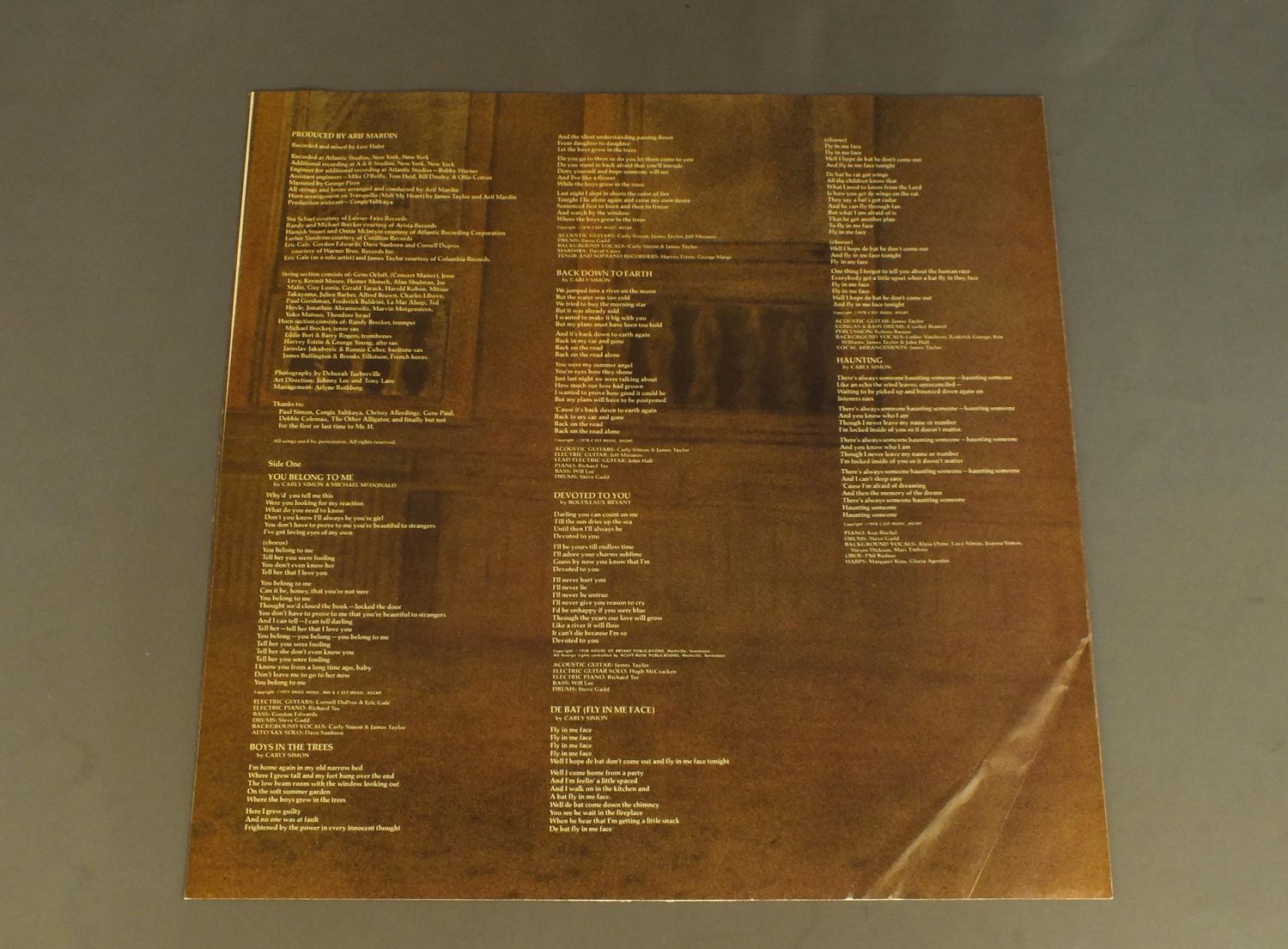 CARLY SIMON/BOYS IN THE TREES 6E128 製造国:米国盤 / Media:LP外観:EX+盤の状態:EX- 価格(税込):¥1,650(売約済) 送料 7inch:定形外郵便 360円~LP:定形外郵便 660円~送料は、注文の最終画面で確認頂けます。 > > CARLY SIMON/BOYS IN THE TREES 外観 (EX+)特記事項:インナ−に抜け有り外観EX+の共通説明:中古としては美品、一見してきれいでダメージが軽微。シミ、ヨゴレ、スレ有っても僅か~少し。 盤の状態 (EX-)特記事項:薄いスリキズ・細かい表面スレ軽くある感じです。プチ出そうな所は少し。軽微なものが中心の様子です。盤EX-の共通説明:盤面のスリキズが多少有り。音に出そうなものは殆ど無いように見える~さほど気にならないぐらいの軽いプチ数カ所程度。 Tweet それぞれの画像をクリックすると、大きい写真が見られます こちらの商品もお勧めです 770円 EMMYLOU HARRIS / CIMARRON 1,320円 EYDIE GORME / HERE`S EYDIE GORME 770円 BUFFY SAINTE-MARIE / I`M GONNA BE A COUNTRY GIRL AGAIN 7,700円 SUSAN MAUGHAN / I WANNA BE BOBBY`S GIRL 1,100円 SYLVIA TYSON / COOL WIND FROM THE NORTH 4,400円 JUDY COLLINS / FIFTH ALBUM (MONO) 924円 OLIVEA NEWTON-JOHN / MAKING A GOOD THING BETTER 1,650円 REGINE / REGINE