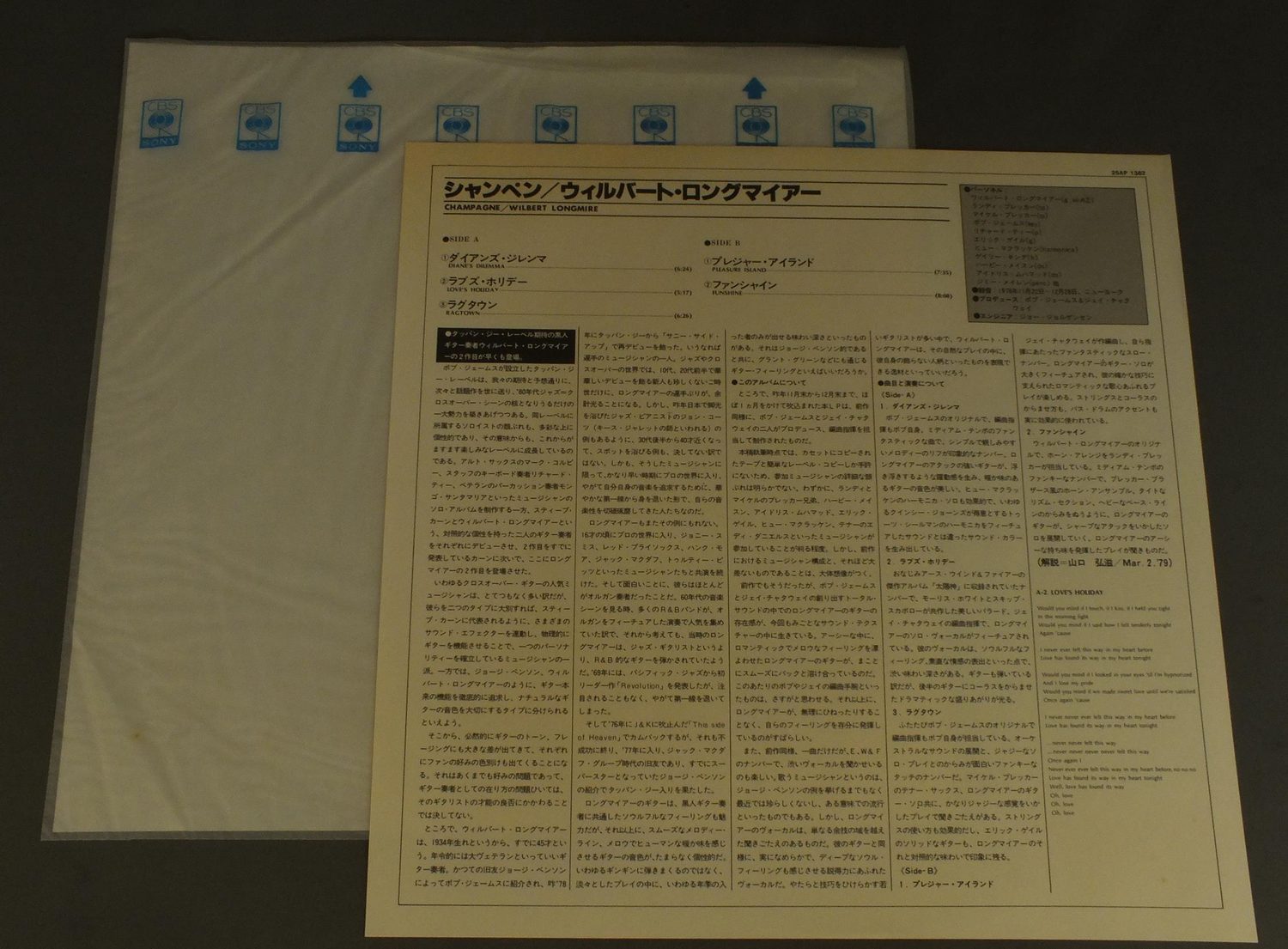 WILBERT LONGMIREウィルバート・ロングマイアー/CHAMPAGNEシャンペン 25AP1382 製造国:日本盤 / Media:LP外観:EX盤の状態:EX帯:EX+ 価格(税込):¥1,100(売約済) 送料 7inch:定形外郵便 360円~LP:定形外郵便 660円~送料は、注文の最終画面で確認頂けます。 > > WILBERT LONGMIRE/CHAMPAGNE 外観 (EX)特記事項:見開きと裏ジャケにシミ外観EXの共通説明:ダメージが限定的。中古品としては保存状態がよい方。シミ、ヨゴレ、スレ 少し~軽度。 盤の状態 (EX)特記事項:薄いスリキズ・スレ少しある感じ。一見してきれいな感じです。盤EXの共通説明:盤面のスリキズが薄いものが少し~軽度 音に出そうなものは無いように見える(軽微なソフトティック音は除く)。 帯の状態 (EX+):特記なし。 Tweet それぞれの画像をクリックすると、大きい写真が見られます こちらの商品もお勧めです 1,210円 WEATHER REPORTウェザー・リポート / TALE SPINNIN`幻祭夜話 1,320円 SKYスカイ / SKY 2スカイ 2 990円 YOSHIAKI MASUO増尾義秋 / SUNSHINE AVENUEサンシャイン・アヴェニュー 770円 MAINIERI & BERNHARDTマイニエリ & バーンハート / FREE SMILESフリー・スマイル 880円 HANK CRAWFORDハンク・クロフォード / TICO RICOティコ・リコ 770円 LEE RITENOUR&HIS GENTLE THOUGHTSリー・リトナー & ジェントル・ソウツ / FRIENDSHIPフレンドシップ 1,320円 MEZZOFORTEメゾフォルテ / SURPRISE SURPRISEガーデン・パーティー 1,320円 HUBERT LAWSヒューバート・ローズ / RITE OF SPRING春の祭典
