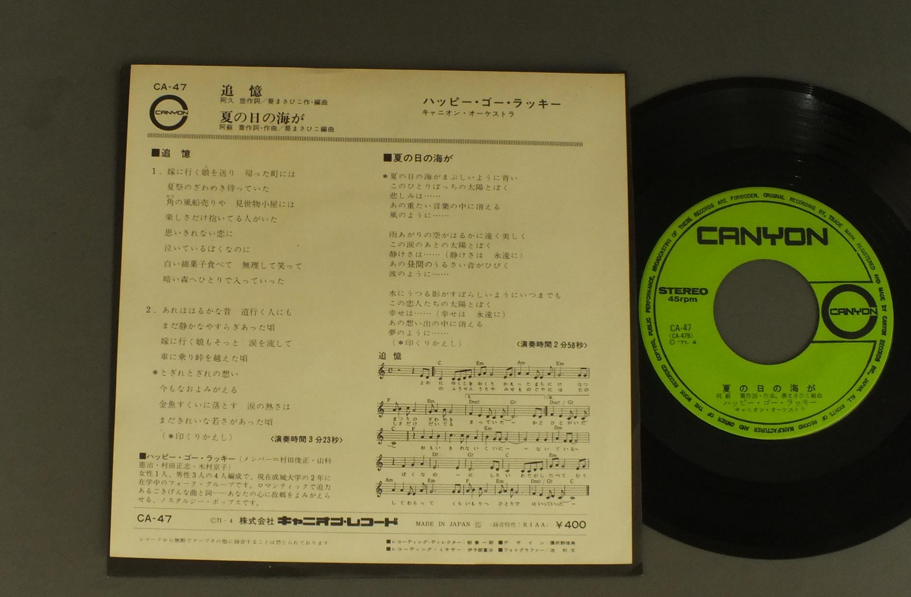 HAPPY GO LUCKYハッピー・ゴー・ラッキー/TUIOKU追憶 CA47 製造国:日本盤 / Media:7inch外観:EX+盤の状態:EX 価格(税込):¥1,100(売約済) 送料 7inch:定形外郵便 360円~LP:定形外郵便 660円~送料は、注文の最終画面で確認頂けます。 > > HAPPY GO LUCKY/TUIOKU 外観 (EX+)特記事項:特記なし。コンディションリストを参照ください。外観EX+の共通説明:中古としては美品、一見してきれいでダメージが軽微。シミ、ヨゴレ、スレ有っても僅か~少し。 盤の状態 (EX)特記事項:薄いスリキズ・スレ少しある感じ。一見してきれいな感じです。盤EXの共通説明:盤面のスリキズが薄いものが少し~軽度 音に出そうなものは無いように見える(軽微なソフトティック音は除く)。 Tweet それぞれの画像をクリックすると、大きい写真が見られます こちらの商品もお勧めです 2,640円 UTANOICHI唄の市 / YAON + BOOKLET野音唄の市 + 楽譜集 770円 TAKASHI NISHIOKA西岡たかし / SOUPスープ 770円 KATSUYUKI MIYAZAWA宮沢勝之 / LIVE IN KIYOSE 81 AUTOGRAPHED陽気に生きようこの人生をさ LIVE IN 清瀬 サイン付 1,980円 SHINTARO GODO五堂新太郎 / FADE INフェイド・イン 660円 OSAMU KITAYAMA北山修 / CHILDREN WHO DO NOT KNOW THE WAR戦争を知らない子供たち 2,200円 YUTAKA SADOYAMA佐渡山豊 / MOTTO CHIKAKUHEもっと近くへ 1,210円 SHIGERU IZUMIYA泉谷しげる / EARLY IZUMIYA WORKS初期の泉谷しげる メモリアル 1,980円 HAKO YAMAZAKI山崎ハコ / TUNAWATARI綱渡り