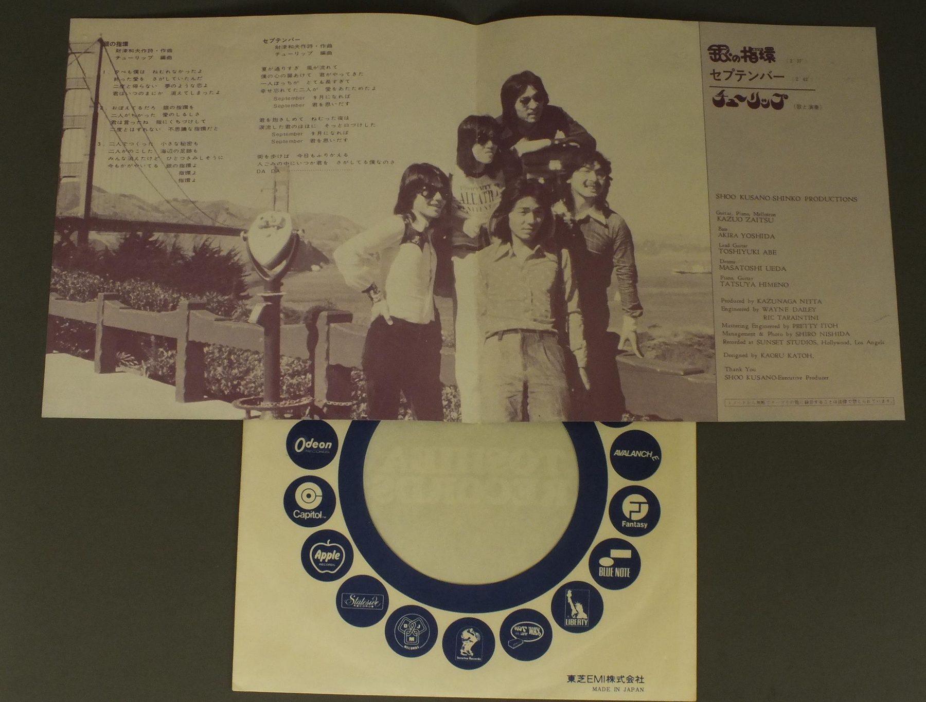 TULIPチューリップ/銀の指環 ETP2969 製造国:日本盤 / Media:7inch外観:EX盤の状態:EX+ 価格(税込):¥550(売約済) 送料 7inch:定形外郵便 360円~LP:定形外郵便 660円~送料は、注文の最終画面で確認頂けます。 > > TULIP/ 外観 (EX)特記事項:特記なし。コンディションリストを参照ください。外観EXの共通説明:ダメージが限定的。中古品としては保存状態がよい方。シミ、ヨゴレ、スレ 少し~軽度。 盤の状態 (EX+)特記事項:極薄いスリキズ・スレ少し。一見してきれいな状態です。盤EX+の共通説明:盤面の極薄いスリキズ、スレ少し程度 音に出そうなものは無いように見える(極軽微なソフトティック音は除く)。 Tweet それぞれの画像をクリックすると、大きい写真が見られます こちらの商品もお勧めです 1,650円 TAKAYUKI INOUE井上堯之 / WATER BAND WAGON 1,210円 YOUSUI INOUE井上陽水 / SHOW WITHOUT INVITATION招待状のないショー。 770円 YOUSUI INOUE井上陽水 / DANZETU断絶 770円 HIROMI IWASAKI岩崎宏美 / AOZORAあおぞら 660円 GO NAGABUCHI長渕 剛 / GYAKURYU逆流 770円 TAKURO YOSHIDAよしだたくろう / OTOGIZOSHI伽草子 770円 YOSHITAROU KANAZAKI加奈崎芳太郎 (古井戸) / AIGA MOSHI SUBETENARA愛がもしすべてなら 1,320円 CHA-CHAチャ・チャ / HITOMI NO-NAKA-NO TAKARAJIMA瞳の中の宝島