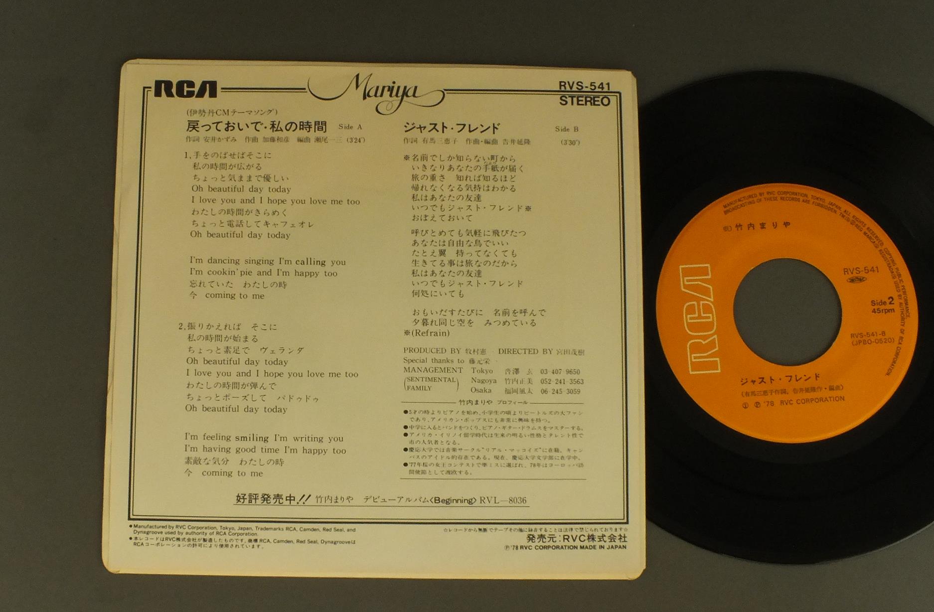 MARIYA竹内まりや/戻っておいで・私の時間 RVS541 製造国:日本盤 / Media:7inch外観:EX+盤の状態:EX+ 価格(税込):¥550(売約済) 送料 7inch:定形外郵便 360円~LP:定形外郵便 660円~送料は、注文の最終画面で確認頂けます。 > > MARIYA/ 外観 (EX+)特記事項:特記なし。コンディションリストを参照ください。外観EX+の共通説明:中古としては美品、一見してきれいでダメージが軽微。シミ、ヨゴレ、スレ有っても僅か~少し。 盤の状態 (EX+)特記事項:極薄いスリキズ・スレ少し。一見してきれいな状態です。盤EX+の共通説明:盤面の極薄いスリキズ、スレ少し程度 音に出そうなものは無いように見える(極軽微なソフトティック音は除く)。 Tweet それぞれの画像をクリックすると、大きい写真が見られます こちらの商品もお勧めです 770円 KUMIKO YAMASHITA山下久美子 / BABY BABY 1,650円 HAJIME TACHIBANA立花はじめ / H・マイナー 帯付 770円 LAYLAレイラ / SEISHUN NO KISEKI青春の奇跡 3,850円 EIICHI OHTAKI大滝詠一 / EACH TIME MASTER SOUND PRESSINGEACH TIME MASTER SOUND盤 440円 KUMIKO YAMASHITA山下久美子 / DAKISHIMETE ONLY YOU抱きしめてオンリィ・ユー 990円 MARI AMACHI天地真理 / YOU&I小さな恋-ひとりじゃないの (あなたと私) 1,210円 PEDORO & CUPRICIOUSペドロ&カプリシャス / BEST ALBUM華麗なるニューポップスの世界 440円 TESSEI MIYOSHI三好鉄生 / TESSEI三好鉄生