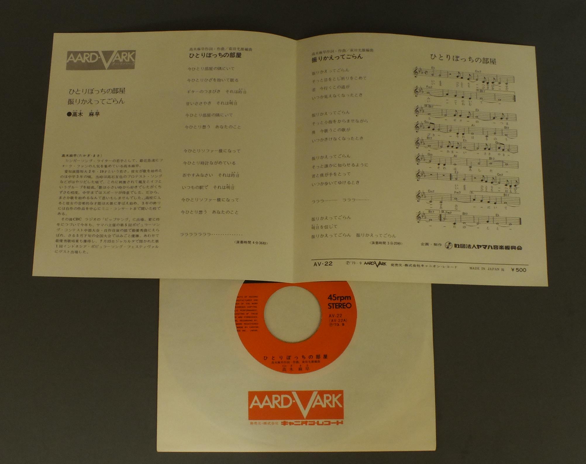 MASA TAKAGI高木麻早/ひとりぼっちの部屋 AV22 製造国:日本盤 / Media:7inch外観:EX+盤の状態:EX+ 価格(税込):¥495(売約済) 送料 7inch:定形外郵便 360円~LP:定形外郵便 660円~送料は、注文の最終画面で確認頂けます。 > > MASA TAKAGI/ 外観 (EX+)特記事項:特記なし。コンディションリストを参照ください。外観EX+の共通説明:中古としては美品、一見してきれいでダメージが軽微。シミ、ヨゴレ、スレ有っても僅か~少し。 盤の状態 (EX+)特記事項:極薄いスリキズ・スレ少し。一見してきれいな状態です。盤EX+の共通説明:盤面の極薄いスリキズ、スレ少し程度 音に出そうなものは無いように見える(極軽微なソフトティック音は除く)。 Tweet それぞれの画像をクリックすると、大きい写真が見られます こちらの商品もお勧めです 660円 KOUSETSU MINAMI南こうせつ / KAERIMICHIかえり道 990円 TOI ET MOIトワ・エ・モワ / SORAYO空よ 2,200円 TAKUROU YOSHIDA吉田拓郎 / ON STAGEオン・ステージ 1,650円 5 BALLOONS五つの赤い風船 / FAIRLY TALEおとぎばなし 440円 CHANCHAKOちゃんちゃこ / 1st ALBUMちゃんちゃこファースト 990円 NOBUYASU OKABAYASHI岡林信康 / DAREZO KONOKO NI AINOTE WO誰ぞこの子に愛の手を 880円 N.S.Pニュー・サディスティック・ピンク / N.S.P. FIRSTN.S.P. I 770円 TAKASHI NISHIOKA西岡たかし / SOUPスープ