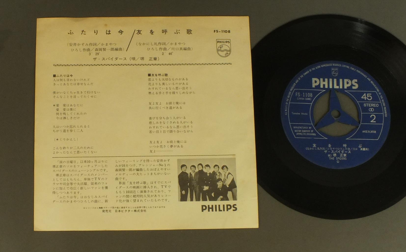 SPIDERSスパイダース/ふたりは今 FS1108 製造国:日本盤 / Media:7inch外観:EX盤の状態:EX- 価格(税込):¥330(売約済) 送料 7inch:定形外郵便 360円~LP:定形外郵便 660円~送料は、注文の最終画面で確認頂けます。 > > SPIDERS/ 外観 (EX)特記事項:特記なし。コンディションリストを参照ください。外観EXの共通説明:ダメージが限定的。中古品としては保存状態がよい方。シミ、ヨゴレ、スレ 少し~軽度。 盤の状態 (EX-)特記事項:薄いスリキズ・細かい表面スレ軽くある感じ。全体的には殆どが軽微なものの様子です。盤EX-の共通説明:盤面のスリキズが多少有り。音に出そうなものは殆ど無いように見える~さほど気にならないぐらいの軽いプチ数カ所程度。 Tweet それぞれの画像をクリックすると、大きい写真が見られます こちらの商品もお勧めです 3,850円 OXオックス / FIRST ALBUMファースト・アルバム 1,320円 TAKESHI TERAUCHI & THE BUNNYS寺内タケシとザ・バニーズ / LET`S GO CLASSICSレッツ・ゴー運命 770円 YUZO KAYAMA加山雄三 / GOLDEN ALBUMゴールデン・アルバム(あなたと共に)赤盤 770円 TIGERSタイガース / TIGERS 1982タイガース 1982 550円 TAKESHI TERAUCHI & THE BUNNYS寺内タケシとバニーズ / LET`S GO CLASSICSレッツ・ゴー運命 660円 YUZO KAYAMA加山雄三 / 15TH ANNIVERSARY加山雄三1976 武道館ライブ 660円 YUZO KAYAMA加山雄三 / AISURUTOKIHA IMA愛する時は今 550円 TIGERSタイガース / 10 YEARS ROMANCE十年ロマンス