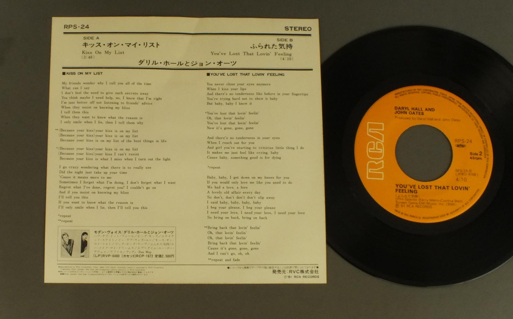 DARYL HALL/JOHN OATESダリル・ホールとジョン・オーツ/KISS ON MY LISTキッス・オン・マイ・リスト RPS24 製造国:日本盤 / Media:7inch外観:EX+盤の状態:EX+ 価格(税込):¥550(売約済) 送料 7inch:定形外郵便 360円~LP:定形外郵便 660円~送料は、注文の最終画面で確認頂けます。 > > DARYL HALL/JOHN OATES/KISS ON MY LIST 外観 (EX+)特記事項:特記なし。コンディションリストを参照ください。外観EX+の共通説明:中古としては美品、一見してきれいでダメージが軽微。シミ、ヨゴレ、スレ有っても僅か~少し。 盤の状態 (EX+)特記事項:薄いスリキズ・スレ少し。一見してきれいな状態です。盤EX+の共通説明:盤面の極薄いスリキズ、スレ少し程度 音に出そうなものは無いように見える(極軽微なソフトティック音は除く)。 Tweet それぞれの画像をクリックすると、大きい写真が見られます こちらの商品もお勧めです 770円 TOTO / ISOLATIONアイソレーション 770円 MOTT THE HOOPLE / LIVE華麗なる扇動者 1,210円 EAGLESイーグルス / LONG RUNザ・ロング・ラン 1,320円 STYXスティクス / KILROY WAS HEREキルロイ・ワズ・ヒア 990円 TONY ORLANDO & DAWNトニー・オーランド&ドーン / HE DON`T LOVE YOU(LIKE I LOVE YOU)恋のシーソー・ゲーム 1,320円 TUXEDO JUNCTIONタキシード・ジャンクション / CHATTANOOGA CHOO CHOOチャタヌガ・チュー・チュー 990円 DONNY & MARIE / WINNING COMBINATION 660円 SUZI QUATROスージー・クアトロ / QUATRO陶酔のアイドル/クアトロ