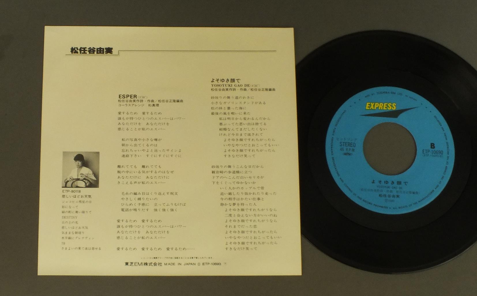 YUMI MATSUTOYA松任谷由実/ESPERエスパー ETP10690 製造国:日本盤 / Media:7inch外観:EX盤の状態:EX+ 価格(税込):¥550(売約済) 送料 7inch:定形外郵便 360円~LP:定形外郵便 660円~送料は、注文の最終画面で確認頂けます。 > > YUMI MATSUTOYA/ESPER 外観 (EX)特記事項:特記なし。コンディションリストを参照ください。外観EXの共通説明:ダメージが限定的。中古品としては保存状態がよい方。シミ、ヨゴレ、スレ 少し~軽度。 盤の状態 (EX+)特記事項:極薄いスリキズ・スレ少し。一見してきれいな状態です。盤EX+の共通説明:盤面の極薄いスリキズ、スレ少し程度 音に出そうなものは無いように見える(極軽微なソフトティック音は除く)。 Tweet それぞれの画像をクリックすると、大きい写真が見られます こちらの商品もお勧めです 1,210円 SNAKEMAN SHOWスネークマン・ショー / 急いで口で吸え! 660円 KENICHI HAGIWARA萩原健一 / NADJAナジャ 770円 YASUKO NAITOH内藤やす子 / NAINAI ZUKUSHIないないづくし 770円 KUMIKO YAMASHITA山下久美子 / DAKISHIMETE ONLY YOU抱きしめてオンリィ・ユー 990円 HISAO KUROSAWA-COLLEGE POPS SINGERS etc黒沢久雄 フォーククルセダーズ ザリガニーズ 他 / JAPANESE FOLK SONG ENCYCLOPEDIA日本フォーク大百科事典 1,320円 KEIKO SAITO斉藤慶子 / KEIKO MONO OMOI慶子、もの想い 1,210円 YUMI MATSUTOYA松任谷由実 / DA/DI/DAダ・ディ・ダ 660円 MASAMICHI SUGI杉真理 / MISTONEミストーン