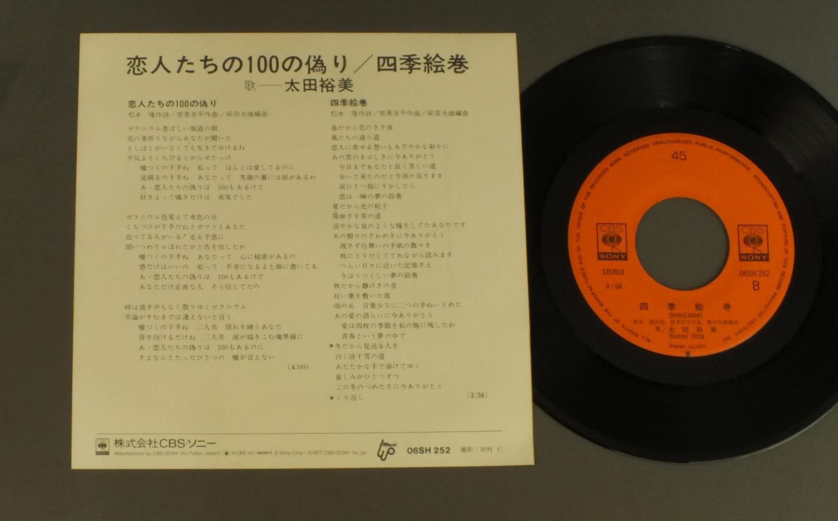 HIROMI OTA太田裕美/KOIBITOTACHI NO 100 NO ITSUWARI恋人たちの100の偽り 06SH252 製造国:日本盤 / Media:7inch外観:EX+盤の状態:EX+ 価格(税込):¥330(売約済) 送料 7inch:定形外郵便 360円~LP:定形外郵便 660円~送料は、注文の最終画面で確認頂けます。 > > HIROMI OTA/KOIBITOTACHI NO 100 NO ITSUWARI 外観 (EX+)特記事項:特記なし。コンディションリストを参照ください。外観EX+の共通説明:中古としては美品、一見してきれいでダメージが軽微。シミ、ヨゴレ、スレ有っても僅か~少し。 盤の状態 (EX+)特記事項:極薄いスリキズ・スレ少し。一見してきれいな状態です。盤EX+の共通説明:盤面の極薄いスリキズ、スレ少し程度 音に出そうなものは無いように見える(極軽微なソフトティック音は除く)。 Tweet それぞれの画像をクリックすると、大きい写真が見られます こちらの商品もお勧めです 770円 MANABU MIYAHARA宮原学 / READY STEADY GO 1,650円 UCHOTEN有頂天 / PEACEピース 770円 AMI OZAKI尾崎亜美 / STOP MOTIONストップ・モーション 770円 CHAGE & ASUKAチャゲ&飛鳥 / 4th ALBUN 21 CENTURY21世紀 880円 AKIRA INABA因幡晃 / NANIKA IIWASURETA YOUNA何か言い忘れたようで… 770円 HIRO TSUNODA & JAP`S GAP`Sつのだ・ひろ&ジャップス・ギャップス / 1st ALBUMジャップス・ギャップス・テーマ 990円 YUKO TOMITAとみたゆう子 / DEUXDEUX (2nd ALBUM) 880円 ALFEEアルフィー / RENAISSANCEルネッサンス