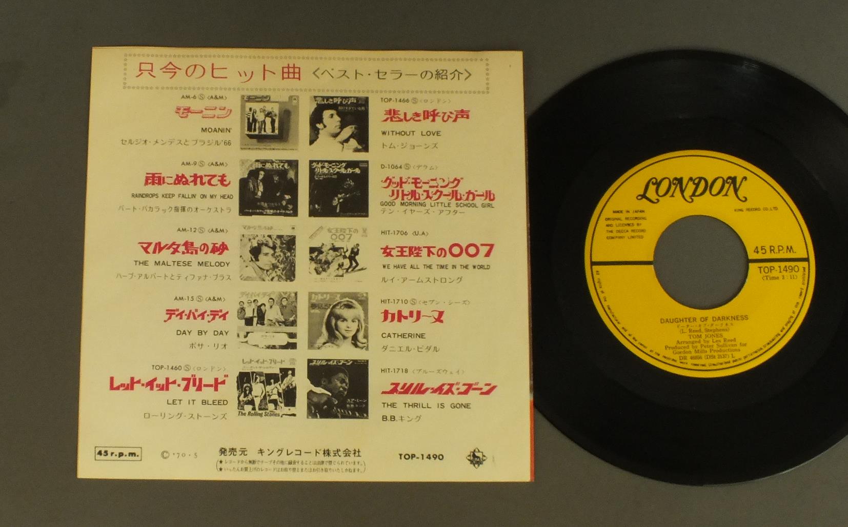 TOM JONESトム・ジョーンズ/DAUGHTER OF DARKNESSドーター・オブ・ダークネス TOP1490 製造国:日本盤 / Media:7inch外観:EX盤の状態:EX 価格(税込):¥440 送料 7inch:定形外郵便 360円~LP:定形外郵便 660円~送料は、注文の最終画面で確認頂けます。 > > TOM JONES/DAUGHTER OF DARKNESS 外観 (EX)特記事項:特記なし。コンディションリストを参照ください。外観EXの共通説明:ダメージが限定的。中古品としては保存状態がよい方。シミ、ヨゴレ、スレ 少し~軽度。 盤の状態 (EX)特記事項:薄いスリキズ・スレ軽くある感じ。殆どが軽微なものの様子です。盤EXの共通説明:盤面のスリキズが薄いものが少し~軽度 音に出そうなものは無いように見える(軽微なソフトティック音は除く)。 Tweet それぞれの画像をクリックすると、大きい写真が見られます こちらの商品もお勧めです 770円 NEIL DIAMONDニール・ダイアモンド / RAINBOWレインボー 1,320円 BOBBY SHERMANボビー・シャーマン / DE LUXEデ・ラックス 770円 DON HOドン・ホー / DON HO LIVE AT THE POLYNESIAN PALACEドン・ホー・ライヴ・アット・ザ・ポリネシアン・パレス 770円 BERTIE HIGGINSバーティ・ヒギンズ / JUST ANOTHER DAY IN PARADISEカサブランカ 1,320円 BRUCE SPRINGSTEENブルース・スプリングスティーン / RIVERリバー 1,320円 RAY THOMASレイ・トーマス / FROM MIGHTY OAKS樫の木のファンタジー 770円 JOHN DAVIDSONジョン・デヴィッドソン / MY BEST TO YOUこの胸のときめきを 770円 BOZ SCAGGSボズ・スキャッグス / DOWN TWO THEN LEFTダウン・トゥー・ゼン・レフト