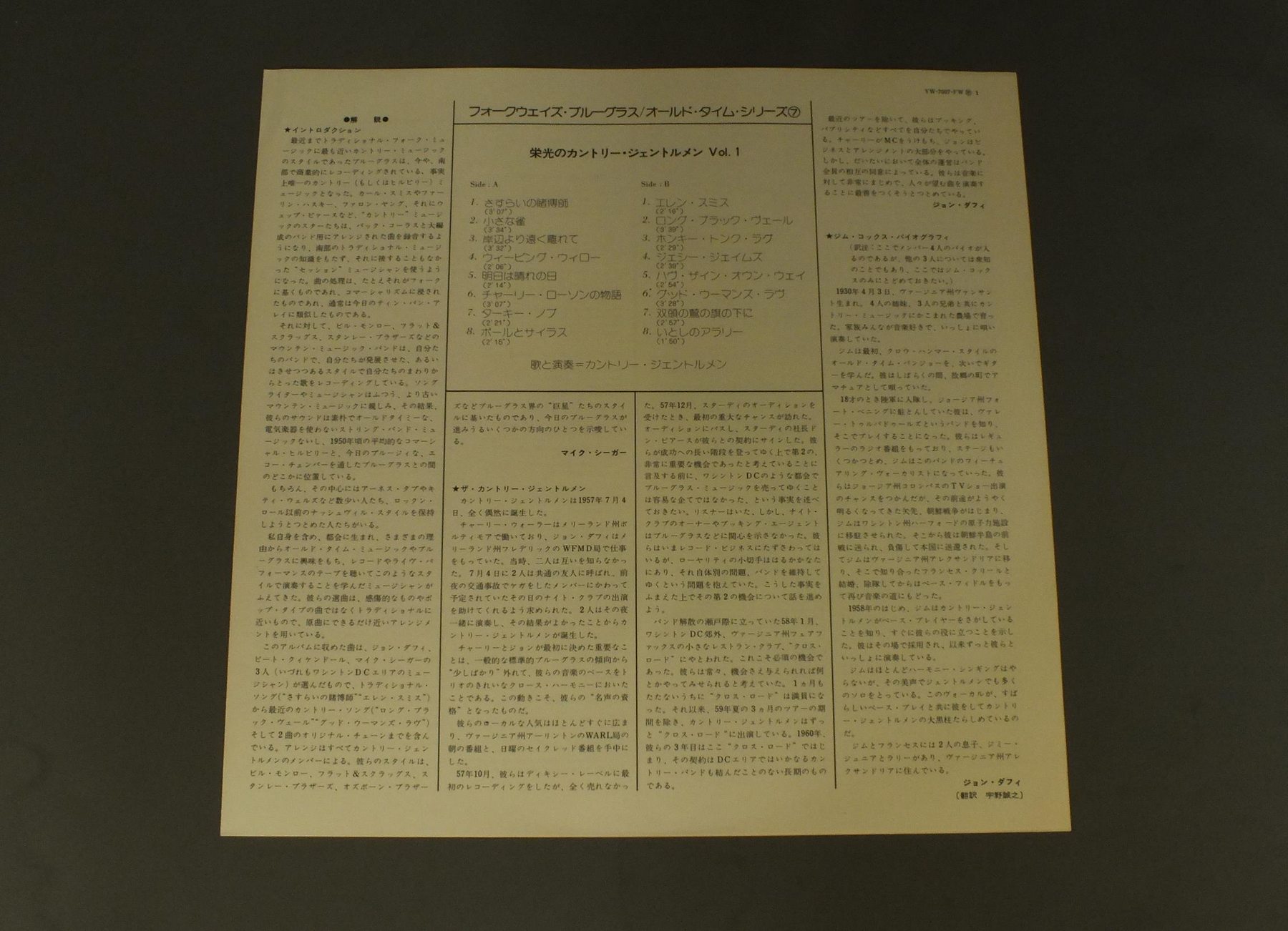 COUNTRY GENTLEMENカントリー・ジェントルメン/CONTRY SONGS.OLD AND NEW栄光のカントリー・ジェントルメン YW7007FW 製造国:日本盤 / Media:LP外観:EX盤の状態:EX 価格(税込):¥1,980(売約済) 送料 7inch:定形外郵便 360円~LP:定形外郵便 660円~送料は、注文の最終画面で確認頂けます。 > > COUNTRY GENTLEMEN/CONTRY SONGS.OLD AND NEW 外観 (EX)特記事項:特記なし。外観EXの共通説明:ダメージが限定的。中古品としては保存状態がよい方。シミ、ヨゴレ、スレ 少し~軽度。 盤の状態 (EX)特記事項:薄いスリキズ・スレ軽くある感じ。軽微なものの様子です。盤EXの共通説明:盤面のスリキズが薄いものが少し~軽度 音に出そうなものは無いように見える(軽微なソフトティック音は除く)。 Tweet それぞれの画像をクリックすると、大きい写真が見られます こちらの商品もお勧めです 990円 PETER PAUL & MARYピーター・ポール&マリー / IN CONCERT 770円 BROTHERS FOURブラザース・フォア / HONEY WIND BLOWSビッグ・フォーク・ヒッツ 第3集 990円 BANJO BARONSバンジョー・バロンズ / IT`S A FOLK FOLK FOLK FOLK WORLDバンジョー. フォーク・ソングの世界 ペラジャケ 660円 JOAN BAEZジョーン・バエズ / JOAN自由の女神 990円 KITTY WELLSキティ・ウェルズ / DUST ON THE BIBLEダスト・オン・ザ・バイブル 770円 NITTY GRITTY DIRT BANDニッティー・グリッティー・ダート・バンド / UNCLE CHARLIE & HIS DOG TEDDYアンクル・チャーリーと愛犬テディー 770円 PETER PAUL&MARYピーター・ポール&マリー / LATE AGAINレイト・アゲイン 770円 NITTY GRITTY DIRT BANDニッティー・グリッティー・ダート・バンド / STARS&STRIPES FOREVER星条旗よ永遠なれ!