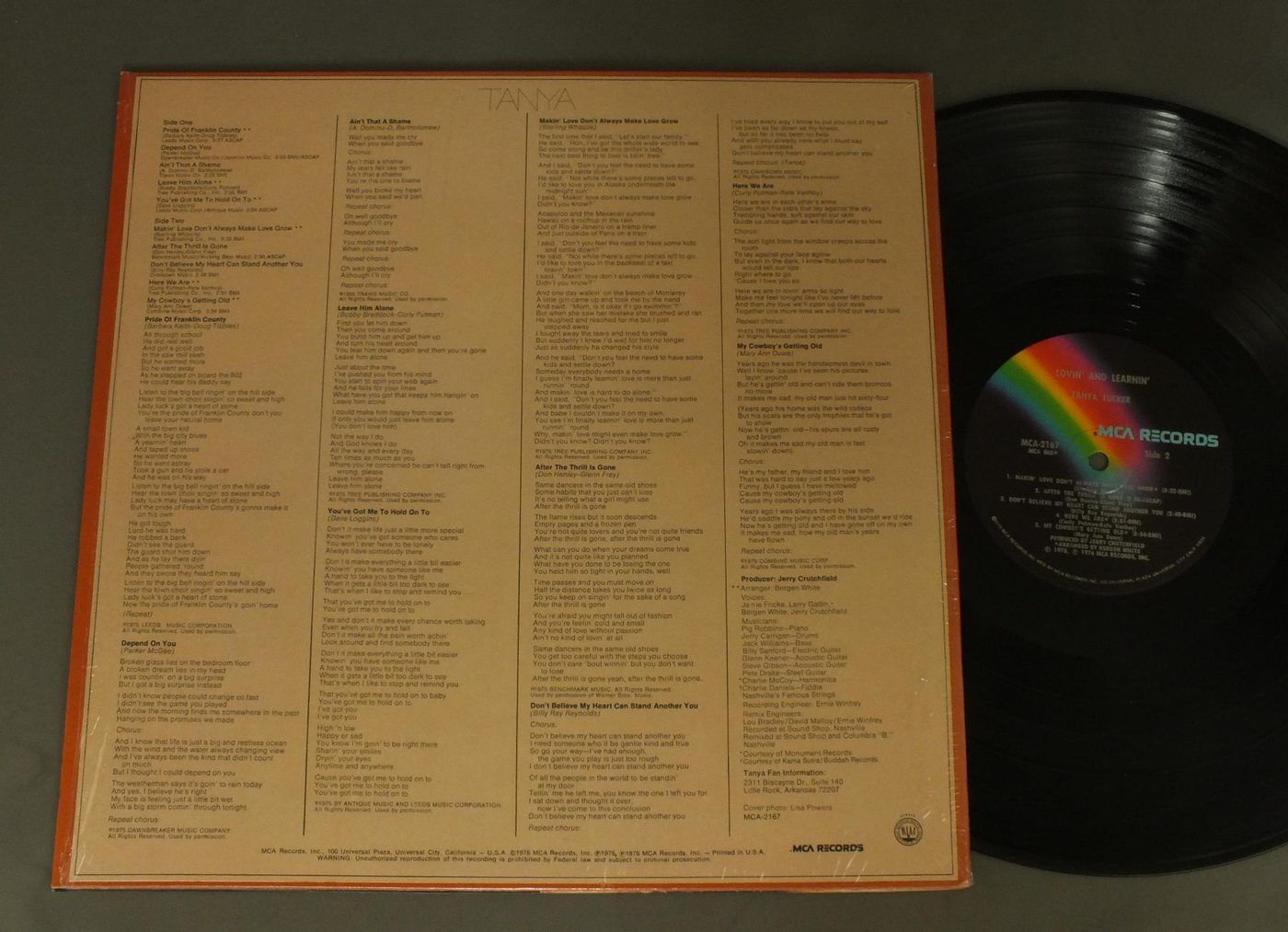 TANYA TUCKER/LOVIN` AND LEARNIN` MCA2167 製造国:米国盤 / Media:LP外観:EX+盤の状態:EX+ 価格(税込):¥880(売約済) 送料 7inch:定形外郵便 360円~LP:定形外郵便 660円~送料は、注文の最終画面で確認頂けます。 > > TANYA TUCKER/LOVIN` AND LEARNIN` 外観 (EX+)特記事項:特記なし。外観EX+の共通説明:中古としては美品、一見してきれいでダメージが軽微。シミ、ヨゴレ、スレ有っても僅か~少し。 盤の状態 (EX+)特記事項:極薄いスリキズ・スレ少し。一見してきれいな状態です。盤EX+の共通説明:盤面の極薄いスリキズ、スレ少し程度 音に出そうなものは無いように見える(極軽微なソフトティック音は除く)。 Tweet それぞれの画像をクリックすると、大きい写真が見られます こちらの商品もお勧めです 4,400円 JUDY COLLINS / FIFTH ALBUM (MONO) 770円 DORIS DAY / GREATEST HITS 1,100円 BELINDA CARLISLE / BELINDA CARLISLE STORY ( AIRDATE JULY 15 1988 ) 880円 LIBBY HOLMAN / SOMETHING TO REMEMBER HER BY 770円 RITA COOLIDGE / HEARTBREAK RADIO 1,100円 NYDIA CARO / NYDIA CARO 1,320円 EYDIE GORME / HERE`S EYDIE GORME 770円 BUFFY SAINTE-MARIE / I`M GONNA BE A COUNTRY GIRL AGAIN
