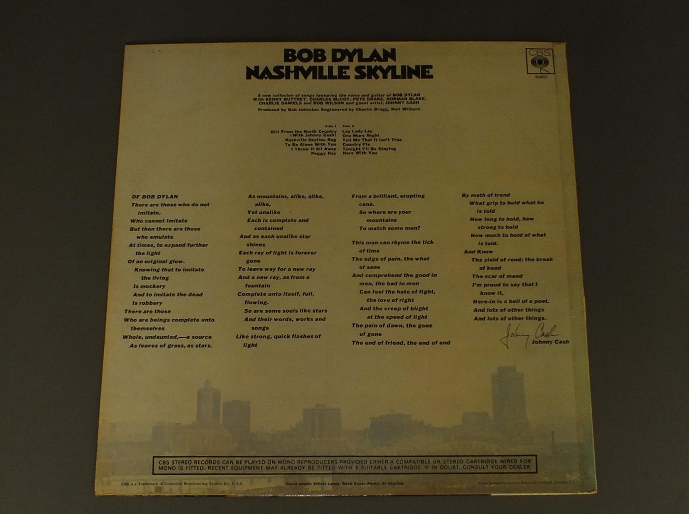 BOB DYLAN/NASHVILLE SKYLINE S63601 製造国:英国盤 / Media:LPMatrix:A1 B2外観:EX盤の状態:EX 価格(税込):¥4,950(売約済) 送料 7inch:定形外郵便 360円~LP:定形外郵便 660円~送料は、注文の最終画面で確認頂けます。 > > BOB DYLAN/NASHVILLE SKYLINE 盤の状態 (EX)特記事項:薄いスリキズ・スレ少しある程度。音に出そうなものもなく一見してきれいな状態です。曲間など、静かなところを中心に聴いて見ましたが、チリノイズ少ないきれいな再生具合でした。盤EXの共通説明:盤面のスリキズが薄いものが少し~軽度 音に出そうなものは無いように見える(軽微なソフトティック音は除く)。 Tweet それぞれの画像をクリックすると、大きい写真が見られます こちらの商品もお勧めです 6,050円 BOB DYLAN / PLANET WAVES 6,600円 BOB DYLAN / NEW MORNING 7,150円 BOB DYLAN / SELF PORTRAIT 3,850円 BOB DYLAN / PAT GARRETT & BILLY THE KID