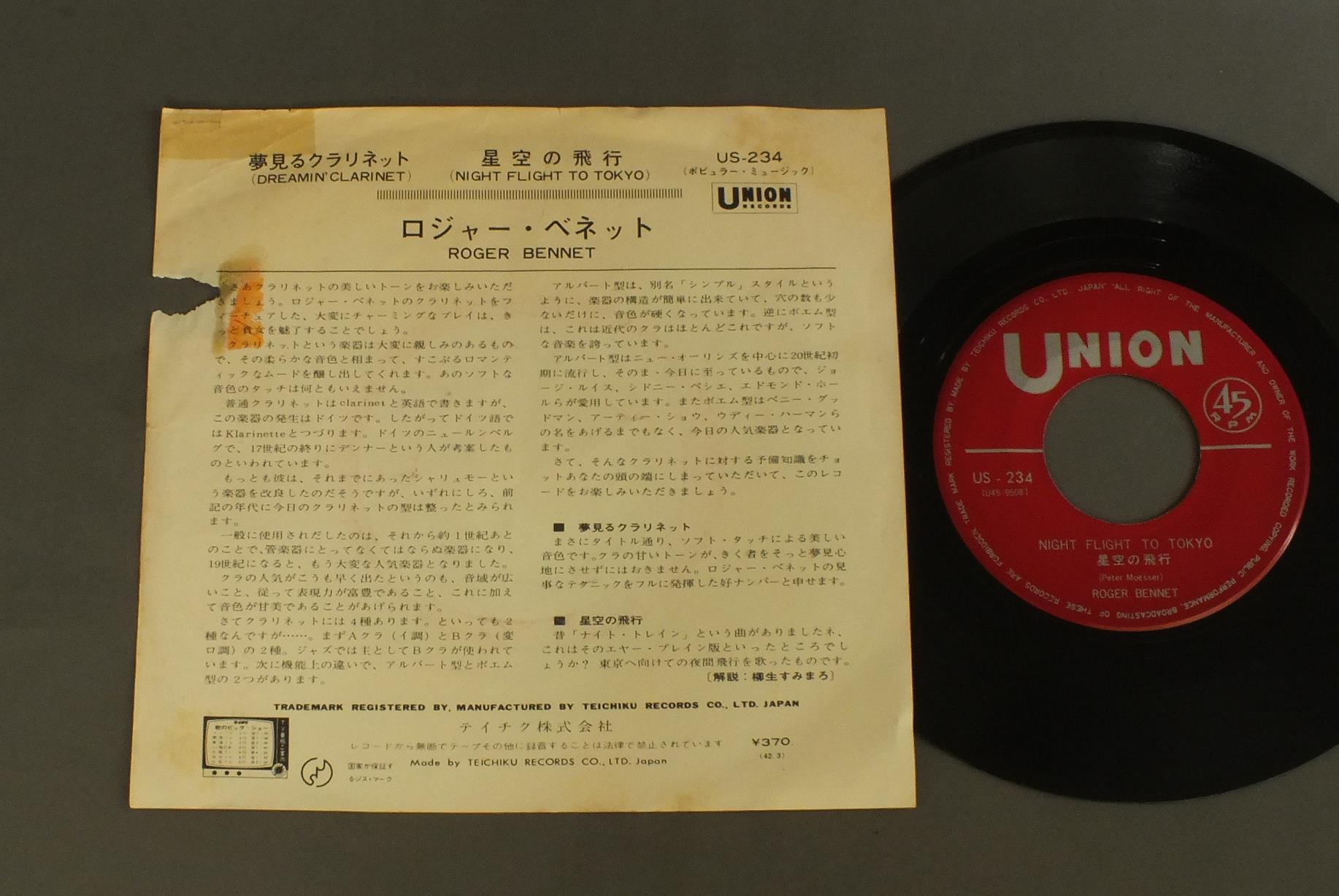 ROGER BENNETロジャー・ベネット/DREAMIN` CLARINET夢見るクラリネット US234 製造国:日本盤 / Media:7inch外観:VG盤の状態:EX 価格(税込):¥330(売約済) 送料 7inch:定形外郵便 360円~LP:定形外郵便 660円~送料は、注文の最終画面で確認頂けます。 > > ROGER BENNET/DREAMIN` CLARINET 外観 (VG)特記事項:破けやテープ有り。外観VGの共通説明:ダメージが見るからに多い。 盤の状態 (EX)特記事項:薄いスリキズ・スレ軽くある感じ。殆どが軽微なものの様子です。盤EXの共通説明:盤面のスリキズが薄いものが少し~軽度 音に出そうなものは無いように見える(軽微なソフトティック音は除く)。 Tweet それぞれの画像をクリックすると、大きい写真が見られます こちらの商品もお勧めです 770円 TERUMASA HINO日野皓正 / PYRAMIDピラミッド 1,320円 DOLLAR BRANDダラー・ブランド / AFRICAN PIANOアフリカン・ピアノ 1,650円 TATSUYA TAKAHASHI&TOKYO UNION ORCH.高橋達也と東京ユニオン / SWING ON SWINGスイング・オン・スイング 1,210円 HERBIE MANNハービー・マン / GLORY OF LOVEグローリー・オブ・ラヴ 1,980円 EIJI KITAMURA北村英治 / APRIL DATE ( MASTER SOUND PRESSING )エイプリル・デイト (マスターサウンド盤) 770円 CHARLIE PARKERチャーリー・パーカー / CHARLIE PARKER ON SAVOY VOL7チャーリー・パーカー・オン・サヴォイVOL7 1,210円 ERIC DOLPHYエリック・ドルフィー / LAST DATEラスト・レコーディング 1,650円 McOY TYNERマッコイ・タイナー / SONG OF THE NEW WORLDソング・オブ・ザ・ニュー・ワールド