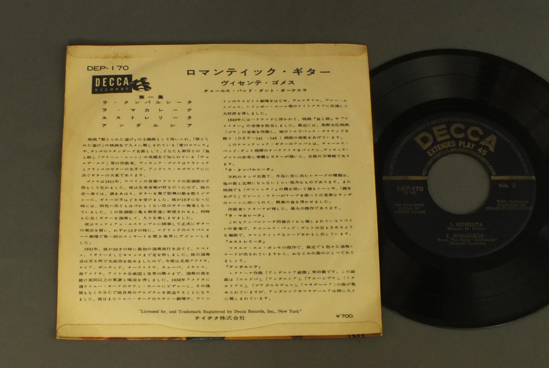 VICENTE GOMEZヴィセンテ・ゴメス/LA CUMPARSITAラ・クンパルシータ DEP170 製造国:日本盤 / Media:7inch外観:VG+盤の状態:EX 価格(税込):¥330 送料 7inch:定形外郵便 360円~LP:定形外郵便 660円~送料は、注文の最終画面で確認頂けます。 > > VICENTE GOMEZ/LA CUMPARSITA 外観 (VG+)特記事項:日焼け有り。外観VG+の共通説明:ダメージやや有り。シミ、ヨゴレ、スレなど多少~やや多め。 盤の状態 (EX)特記事項:薄いスリキズ・スレ軽くある感じ。軽微なものの様子です。盤EXの共通説明:盤面のスリキズが薄いものが少し~軽度 音に出そうなものは無いように見える(軽微なソフトティック音は除く)。 Tweet それぞれの画像をクリックすると、大きい写真が見られます こちらの商品もお勧めです 1,320円 WILTON FELDERウィルトン・フェルダー / SECRETSシークレッツ 2,640円 EDDIE CONDON ALL STARSエディ・コンドン・オール・スターズ / EDDIE CONDON ALL STARS 1945 5LP BOX SETエディ・コンドン・オール・スターズ1945 5枚組 1,210円 ERROLL GARNERエロール・ガーナー / CONCERT BY THE SEACONCERT BY THE SEA 1,210円 BUCK CLAYTONバック・クレイトン / PASSORT TO PARADISEスポート・トゥ・パラダイス 770円 JOHN KLEMMERジョン・クレマー / LIFESTYLEライフスタイル 1,320円 SUNSET ALL STARSサンセット・オール・スターズ / JAMMIN` AT SUNSET VOL.2ジャミン・アット・サンセット 第2集 660円 JACQUES LOUSSIERジャック・ルーシェ / PLAY BACHプレイ・バッハ 880円 SADAO WATANABE渡辺貞夫 / MY DEAR LIFEマイ・ディア・ライフ