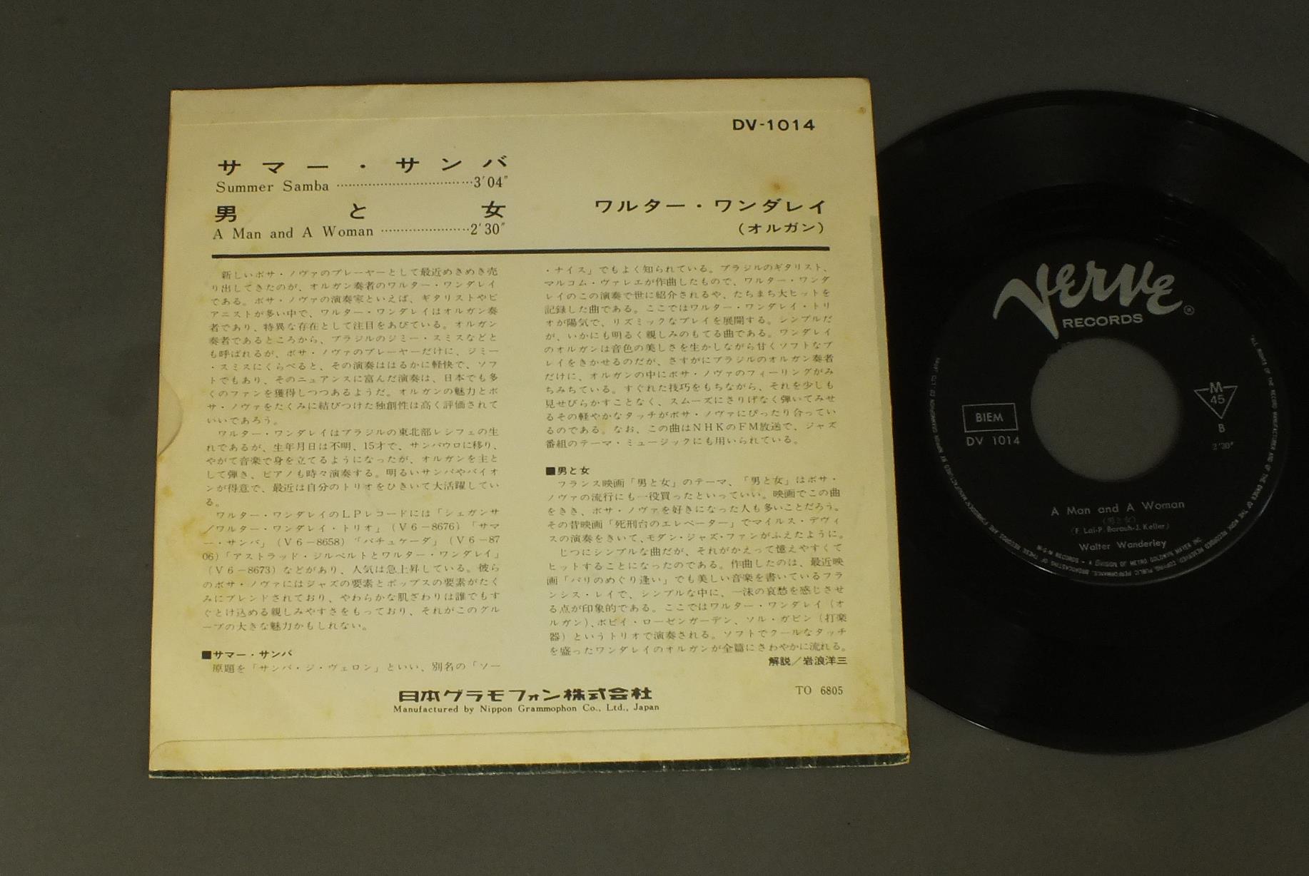WALTER WANDERLEYワルター・ワンダレイ/SUMMER SAMBAサマー・サンバ DV1014 製造国:日本盤 / Media:7inch外観:VG+盤の状態:EX+ 価格(税込):¥550(売約済) 送料 7inch:定形外郵便 360円~LP:定形外郵便 660円~送料は、注文の最終画面で確認頂けます。 > > WALTER WANDERLEY/SUMMER SAMBA 外観 (VG+)特記事項:シミ有り外観VG+の共通説明:ダメージやや有り。シミ、ヨゴレ、スレなど多少~やや多め。 盤の状態 (EX+)特記事項:極薄いスリキズ・スレ少し。一見してきれいな状態です。盤EX+の共通説明:盤面の極薄いスリキズ、スレ少し程度 音に出そうなものは無いように見える(極軽微なソフトティック音は除く)。 Tweet それぞれの画像をクリックすると、大きい写真が見られます こちらの商品もお勧めです 1,210円 JIMMY SMITHジミー・スミス / PORTUGUESE SOULポルトガル・ソウル 990円 JAMES NEWTONジェームズ・ニュートン / DAYDREAMデイドリーム 770円 TEDDY CHARLES TENTETテディ・チャールズ・テンテット / TEDDY CHARLES TENTETテディ・チャールズ・テンテット 990円 JOHN LEWISジョン・ルイス / EUROPEAN WINDOWSヨーロッパの窓 1,320円 KAZUMI WATANABE-STEVE GADD etc渡辺香津美-スティーヴ・ガッド 他 / TEO MACERO PRESENTS IMPRESSIONS OF VIRUSテオ・マセロ・プレゼンツ 復活の日の印象 770円 BRUCE FORMANブルース・フォアマン / COAST TO COASTコースト・トゥ・コースト 770円 ART TATUM&HIS BANDアート・テイタム楽団 / ART TATUM & HIS SWINGSTERSアート・テイタム・オール・スター・セッション 1,210円 OUT OF THE BLUEアウト・オブ・ザ・ブルー / OUT OF THE BLUEアウト・オブ・ザ・ブルー