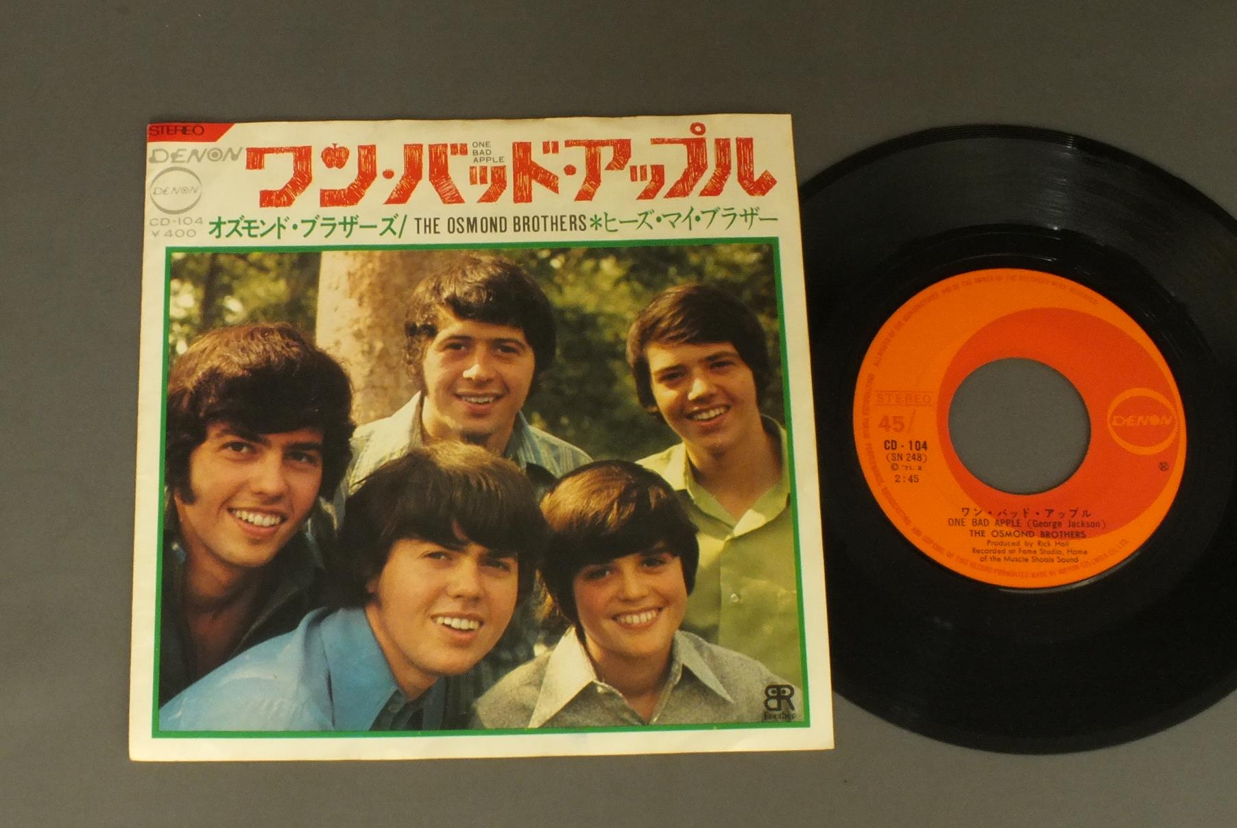 OSMOND BROTHERSオズモンド・ブラザーズ/ONE BAD APPLEワン・バッド・アップル CD104 製造国:日本盤 / Media:7inch外観:EX-盤の状態:EX 価格(税込):¥550(売約済) 送料 7inch:定形外郵便 360円~LP:定形外郵便 660円~送料は、注文の最終画面で確認頂けます。 > > OSMOND BROTHERS/ONE BAD APPLE 外観 (EX-)特記事項:ヨレやシミ外観EX-の共通説明:ダメージ軽度~多少。 中古品としては普通の状態。シミ、ヨゴレ、スレなど軽く~多少。 盤の状態 (EX)特記事項:薄いスリキズ・スレ軽くある感じ。殆どが軽微なものの様子です。盤EXの共通説明:盤面のスリキズが薄いものが少し~軽度 音に出そうなものは無いように見える(軽微なソフトティック音は除く)。 Tweet それぞれの画像をクリックすると、大きい写真が見られます こちらの商品もお勧めです 770円 MOTT THE HOOPLE / LIVE華麗なる扇動者 1,980円 STYXスティクス / PIECES OF EIGHTピーシズ・オブ・エイト (古代への追想) 1,320円 KENNY ROGERS & THE FIRSY EDITIONケニー・ロジャーズとファースト・エディション / TELL IT ALL BROTHERテル・イット・オール・ブラザー 1,320円 PARRIDGE FAMILYパートリッジ・ファミリー / SOUND MAGAZINE夢見るデビット 1,980円 STYXスティクス / CAUGHT IN THE ACT LIVEスティクス・ライブ 550円 GRAND FUNK RAILROADグランド・ファンク・レイルロード / CAUGHT IN THE ACTグランド・ファンク・ツアー75 770円 REO SPEED WAGONREOスピード・ワゴン / REO SPEED WAGON LIVEREO ライブ 嵐の中へ 990円 DONNY & MARIE / WINNING COMBINATION