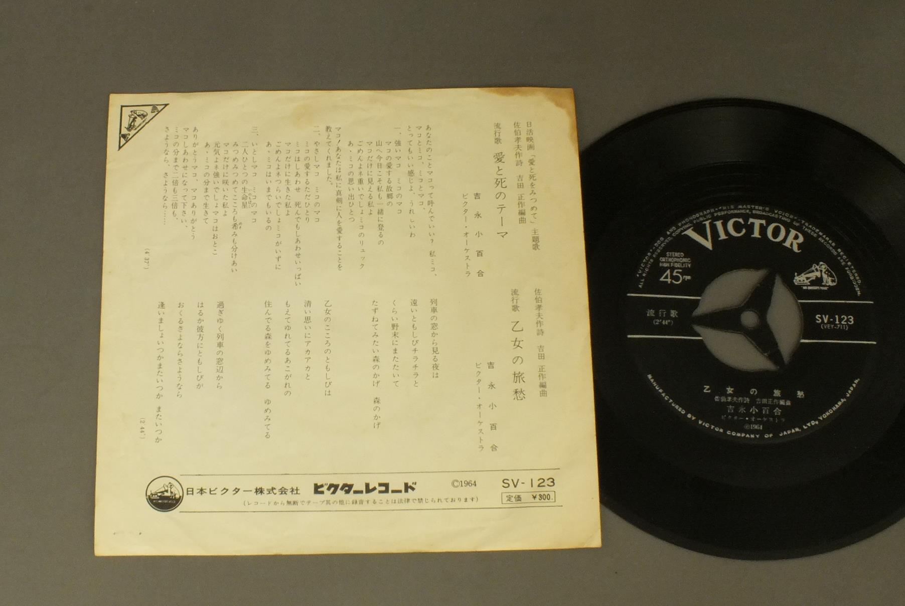 YOSHINAGA SAYURI吉永小百合/AI TO SHI NO THEME愛と死のテーマ SV123 製造国:日本盤 / Media:7inch外観:VG盤の状態:VG+ 価格(税込):¥330(売約済) 送料 7inch:定形外郵便 360円~LP:定形外郵便 660円~送料は、注文の最終画面で確認頂けます。 > > YOSHINAGA SAYURI/AI TO SHI NO THEME 外観 (VG)特記事項:ヨレやシミ外観VGの共通説明:ダメージが見るからに多い。 盤の状態 (VG+)特記事項:薄いスリキズ・細かいスレ多少。プチ出そうな小キズ、線キズも有ります。少し聴いてみましたが、音自体はしっかりクリアーに鳴っているようでした。盤VG+の共通説明:盤面にスリキズが多少~やや有り、音に出そうなものも多少ある。 Tweet それぞれの画像をクリックすると、大きい写真が見られます こちらの商品もお勧めです 1,320円 RUMIKO KOYANAGI小柳ルミ子 / HARU NO OTOZURE春のおとずれ 770円 TULIPチューリップ / BOKU GATSUKUTTA AINO UTAぼくがつくった愛のうた 990円 MASAAKI SAKAI堺正章 / SOLITUDEひとりぼっちのマチャアキ 660円 TAKAKO SHIRAI白井貴子 / PASCAL 1,210円 ALFIEアルフィー / GREENHORN ( VICTOR YEARS 1974-76 ) + OUTER COVERGREENHORN ( VICTOR YEARS 1974-76 ) + オリジナル外袋 770円 CHIKA UEDA上田知華 / MISS HEARTミス・ハート 1,320円 SHIGERU MATSUZAKI松崎しげる / WATASHI NO UTA ORETACHI NO ASA私の歌 俺たちの朝 880円 SUGIYAMA-K杉山清貴 / KONA WEATHER