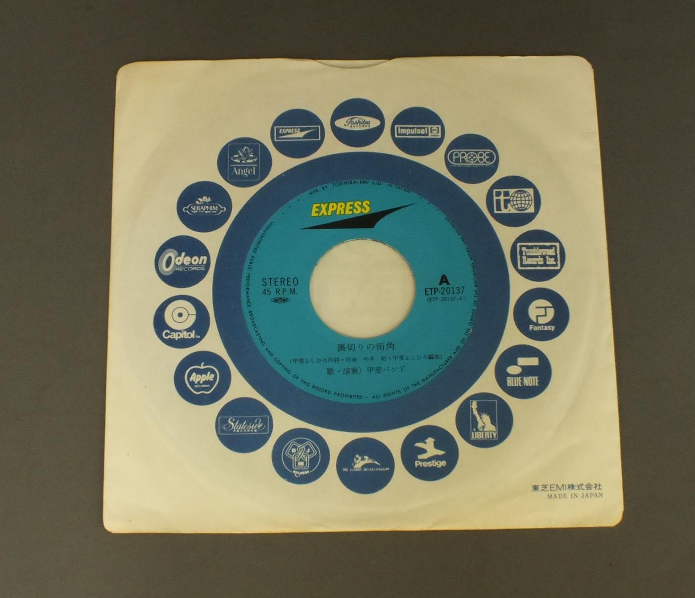 KAI BAND甲斐バンド/URAGIRI NO MACHIKADO裏切りの街角 ETP20137 製造国:日本盤 / Media:7inch外観:EX盤の状態:EX+ 価格(税込):¥330(売約済) 送料 7inch:定形外郵便 360円~LP:定形外郵便 660円~送料は、注文の最終画面で確認頂けます。 > > KAI BAND/URAGIRI NO MACHIKADO 外観 (EX)特記事項:右下にホッチキス穴外観EXの共通説明:ダメージが限定的。中古品としては保存状態がよい方。シミ、ヨゴレ、スレ 少し~軽度。 盤の状態 (EX+)特記事項:薄いスリキズ・スレ少し。一見してきれいな状態です。盤EX+の共通説明:盤面の極薄いスリキズ、スレ少し程度 音に出そうなものは無いように見える(極軽微なソフトティック音は除く)。 Tweet それぞれの画像をクリックすると、大きい写真が見られます こちらの商品もお勧めです 770円 YUMING松任谷由実 / RINCARNATIONリ・インカーネイション 1,320円 CUTING EDGE / CUTING EDGE 1,210円 KATSUYA KOBAYASHI & NUMBER ONE BANDナンバーワン・バンド / 1st ALBUMもも 880円 YUMI MATSUTOYA松任谷由実 / RE INCARNATIONリ・インカーネイション 660円 MASAMICHI SUGI杉真理 / MISTONEミストーン 990円 YUKO TOMITAとみたゆう子 / DEUXDEUX (2nd ALBUM) 770円 YUMI MATSUTOYA松任谷由実 / DA・DI・DA 440円 AMII OZAKI尾崎亜美 / SHOT