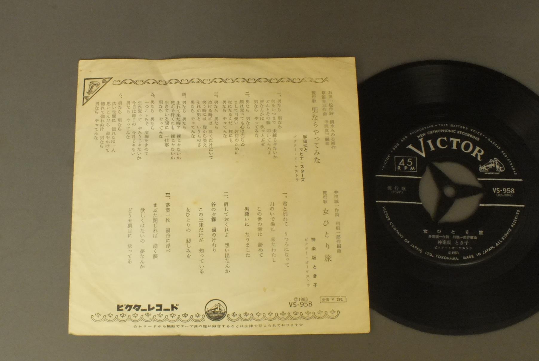 TOKIKO KAGURAZAKA神楽坂とき子/ONNA HITORI TABI女ひとり旅 VS958 製造国:日本盤 / Media:7inch外観:VG+盤の状態:EX 価格(税込):¥550 送料 7inch:定形外郵便 360円~LP:定形外郵便 660円~送料は、注文の最終画面で確認頂けます。 > > TOKIKO KAGURAZAKA/ONNA HITORI TABI 外観 (VG+)特記事項:ヨレやシミ外観VG+の共通説明:ダメージやや有り。シミ、ヨゴレ、スレなど多少~やや多め。 盤の状態 (EX)特記事項:薄いスリキズ・スレ軽くある感じ。殆どが軽微なものの様子です。盤EXの共通説明:盤面のスリキズが薄いものが少し~軽度 音に出そうなものは無いように見える(軽微なソフトティック音は除く)。 Tweet それぞれの画像をクリックすると、大きい写真が見られます こちらの商品もお勧めです 770円 三浦洸一 / ゴールデン・ヒット 770円 YUJIRO ISHIHARA石原裕次郎 / YUJIRO ISHIHARA ORIGINAL BEST石原裕次郎オリジナルベスト 990円 YOSHIO TABATA田端義夫 / SHIMA SODACHI島育ち 880円 村田英雄-青山和子-安達明 他 / コロムビア歌のハイライト (第五集) 1,210円 HACHIRO KASUGA春日八郎 / HACHIRO KASUGA HIT ALBUM春日八郎 -魅力のすべて- 990円 YOSHIO TABATA田端義夫 / BEST ALBUM歌道ひと筋三十年 田端義夫の傑作全集 心の唄 770円 HIBARI MISORA美空ひばり / 1932-35芸能生活30周年記念 歌謡曲50年 第2集 ( 昭和7- 10年) 660円 KOJO TSURUTA鶴田浩二 / RED AND BLACK BLUES赤と黒のブルース