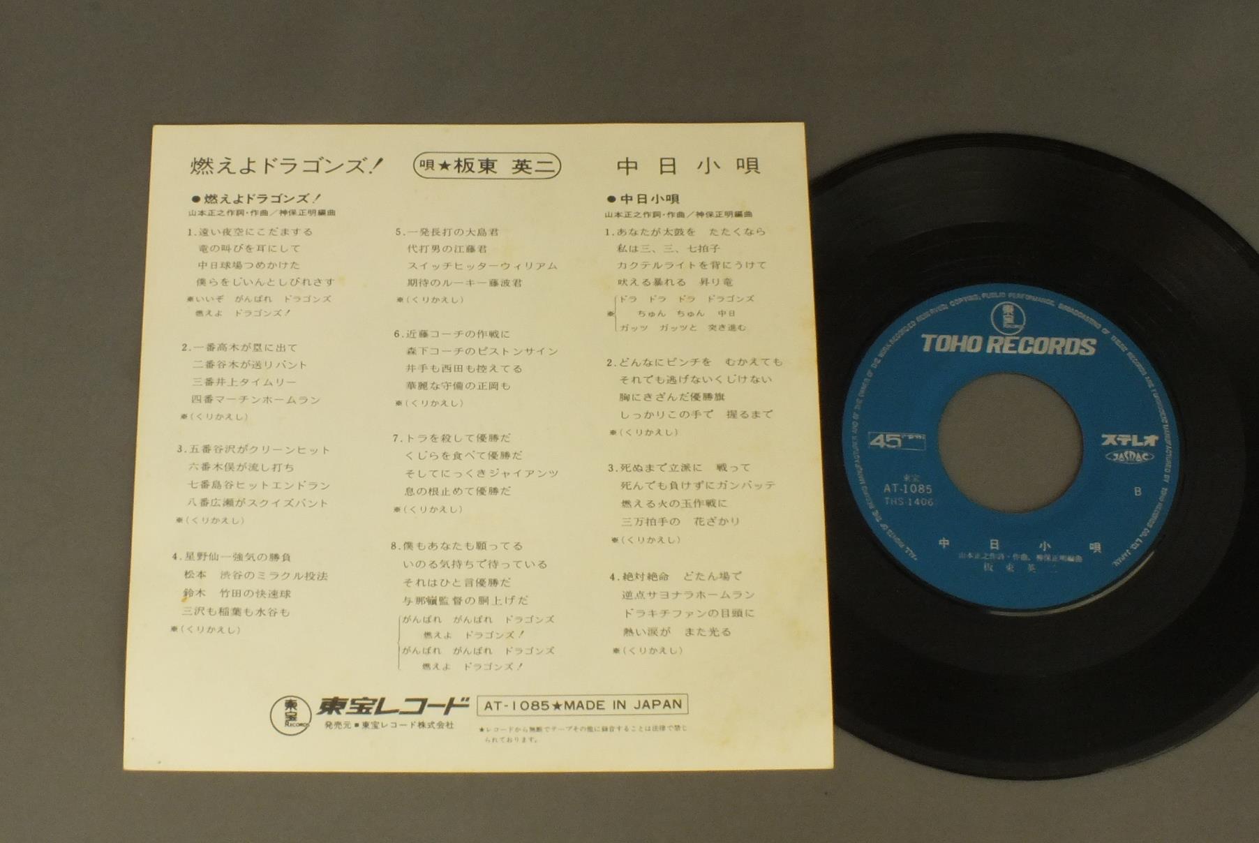 EIJI BANDOU坂東英二/MOEYO DORAGONS燃えよドラゴンズ AT1085 製造国:日本盤 / Media:7inch外観:EX-盤の状態:EX+ 価格(税込):¥440(売約済) 送料 7inch:定形外郵便 360円~LP:定形外郵便 660円~送料は、注文の最終画面で確認頂けます。 > > EIJI BANDOU/MOEYO DORAGONS 外観 (EX-)特記事項:シミ有り外観EX-の共通説明:ダメージ軽度~多少。 中古品としては普通の状態。シミ、ヨゴレ、スレなど軽く~多少。 盤の状態 (EX+)特記事項:薄いスリキズ・スレ少し。一見してきれいな状態です。盤EX+の共通説明:盤面の極薄いスリキズ、スレ少し程度 音に出そうなものは無いように見える(極軽微なソフトティック音は除く)。 Tweet それぞれの画像をクリックすると、大きい写真が見られます こちらの商品もお勧めです 770円 JAPANESE PRO-WRESTLINGプロレス / SUPER FIGHTER`S THEMESスーパー・ファイターのテーマ 1,320円 PRO-WRESTLINGプロレスリング / STAR PRO-WRESTER THEME SONGS各スーパースターテーマ曲集 990円 甲子園 / 全国中等学校・高等学校野球大会史 1,320円 PRO-WRESTLINGプロレスリング / PRO-WRESTLING 2プロレスリング 2 770円 SUMO SOUNDS呼出し三郎 他 / SUMO-JINKU相撲甚句