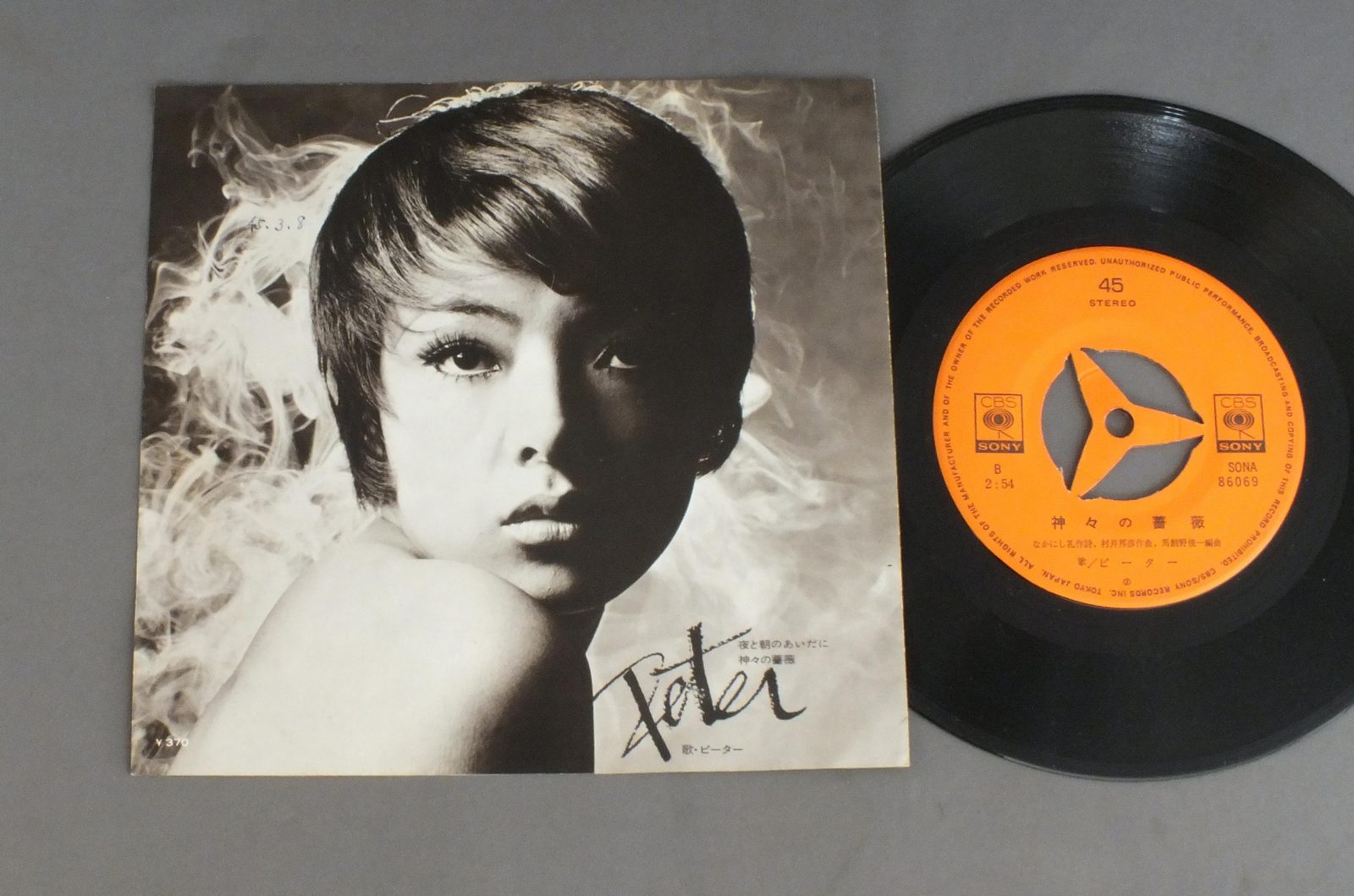 PETERピーター/BETWEEN NIGHT AND DAY夜と昼のあいだに SONA86069 製造国:日本盤 / Media:7inch外観:EX-盤の状態:EX 価格(税込):¥550(売約済) 送料 7inch:定形外郵便 360円~LP:定形外郵便 660円~送料は、注文の最終画面で確認頂けます。 > > PETER/BETWEEN NIGHT AND DAY 外観 (EX-)特記事項:裏側に書き込み小外観EX-の共通説明:ダメージ軽度~多少。 中古品としては普通の状態。シミ、ヨゴレ、スレなど軽く~多少。 盤の状態 (EX)特記事項:薄いスリキズ・スレ軽くある感じ。殆どが軽微なものの様子です。盤EXの共通説明:盤面のスリキズが薄いものが少し~軽度 音に出そうなものは無いように見える(軽微なソフトティック音は除く)。 Tweet それぞれの画像をクリックすると、大きい写真が見られます こちらの商品もお勧めです 990円 MIZUKI OHURA大浦みずき / NIGHT & DAYナイト&デイ 990円 HIROMI IWASAKI岩崎ひろみ / YUUGUREKARA夕暮れからひとり 770円 YOSHIMI IWASAKI岩崎良美 / ATRIE+FREE 7inch心のアトリエ + シングルレコード 880円 YOUSUI INOUE井上陽水 / EVERY NIGHT 660円 I.GEORGEアイ・ジョージ / JONETSU NO UTAGOE情熱の歌声 770円 HIROMI OHTA大田裕美 / 12 PAGES POETRY12ページの詩集 990円 EIKICHI YAZAWA矢沢永吉 / SUPER LIVE BUDOKANスーパー・ライブ日本武道館 770円 NUMBER ONE BANDナンバーワン・バンド / MOMOもも