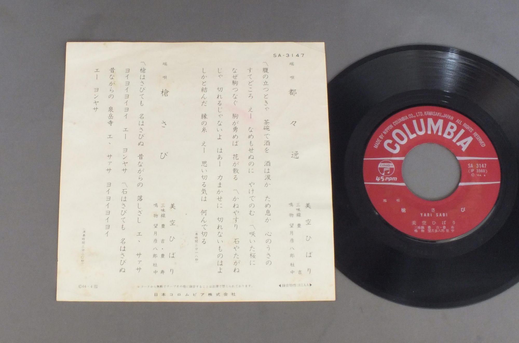 HIBARI MISORA美空ひばり/DODOITSU端唄 都々逸 SA3147 製造国:日本盤 / Media:7inch外観:VG+盤の状態:EX- 価格(税込):¥550(売約済) 送料 7inch:定形外郵便 360円~LP:定形外郵便 660円~送料は、注文の最終画面で確認頂けます。 > > HIBARI MISORA/DODOITSU 外観 (VG+)特記事項:シミやヨレ、切れ有り外観VG+の共通説明:ダメージやや有り。シミ、ヨゴレ、スレなど多少~やや多め。 盤の状態 (EX-)特記事項:薄いスリキズ・細かい表面スレ軽くある感じ。全体的には殆どが軽微なものの様子です。盤EX-の共通説明:盤面のスリキズが多少有り。音に出そうなものは殆ど無いように見える~さほど気にならないぐらいの軽いプチ数カ所程度。 Tweet それぞれの画像をクリックすると、大きい写真が見られます こちらの商品もお勧めです 880円 上原敏 / ポリドール(SP原盤)シリーズ -第6集- 哀愁の抒情・マドロス歌謡 660円 MISAO MATSUBARA松原操 / COLLECTION VOL2第ニ集-浮草の唄 880円 KEN TSUMURA津村謙 / KAYO ALBUM津村謙歌謡アルバム 1,210円 HACHIRO KASUGA春日八郎 / HACHIRO KASUGA HIT ALBUM春日八郎 -魅力のすべて- 770円 HIBARI MISORA美空ひばり / 1932-35芸能生活30周年記念 歌謡曲50年 第2集 ( 昭和7- 10年) 770円 MIDORI SASA笹みどり / BEST HITS下町育ち 笹みどりヒット集 880円 村田英雄-青山和子-安達明 他 / コロムビア歌のハイライト (第五集) 1,210円 高峰秀子-橋幸夫 他 / 続 日本流行歌史