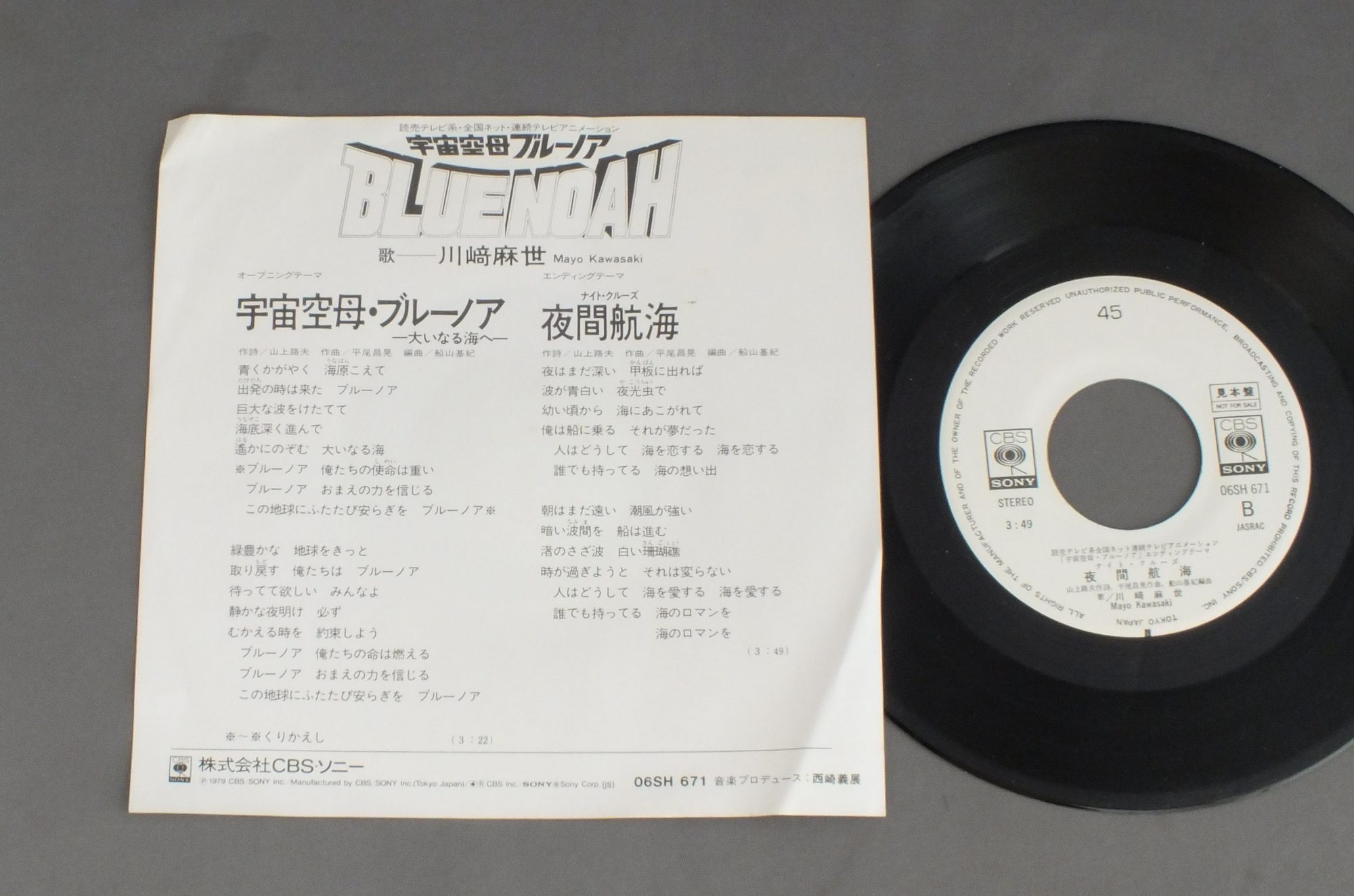 MAYO KAWASAKI川麻世/ANIME SPACE BATTLE SHIP BLUE NOAHアニメ 宇宙空母ブルーノア 06SH671 製造国:日本盤 / Media:7inch外観:EX盤の状態:EX+ 価格(税込):¥550(売約済) 送料 7inch:定形外郵便 360円~LP:定形外郵便 660円~送料は、注文の最終画面で確認頂けます。 > > MAYO KAWASAKI/ANIME SPACE BATTLE SHIP BLUE NOAH 盤の状態 (EX+)特記事項:極薄いスリキズ・スレ少し。一見してきれいな状態です。盤EX+の共通説明:盤面の極薄いスリキズ、スレ少し程度 音に出そうなものは無いように見える(極軽微なソフトティック音は除く)。 その他:見本盤 Tweet それぞれの画像をクリックすると、大きい写真が見られます こちらの商品もお勧めです 770円 ROUND-VERNIAN VIFAM銀河漂流バイファム / SOUNDTRACK EXTRA EDITION音楽集・番外編 770円 ROUND-VERNIAN VIFAM銀河漂流バイファム / ORIGINAL SOUND TRACK音楽集 1,210円 ANIME MACROSSマクロス / MISS DJテレビドラマ篇 1,320円 ANIME GATCHAMANアニメ 科学忍者隊 ガッチャマン / GATCHAMAN 2 VOL2ガッチャマン? VOL2 1,650円 ANIME SYBORG 009アニメ サイボーグ009 / TV ORIGINAL SOUNDTRACKテレビ・オリジナル・サウンドトラック 1,320円 ANIME SIX GOD COMBINATION MARSアニメ 六神合体ゴッドマーズ / MARS AND MARG STORY + POSTERドラマ編マーズ&マーグ物語 1,210円 ANIME AONI PPRODUCTION青二プロ / VOICE VOICE VOICE10周年記念フェスティバル・ライヴ 1,650円 CYBORG 009サイボーグ009 / TV SERIES VOL1Xの挑戦