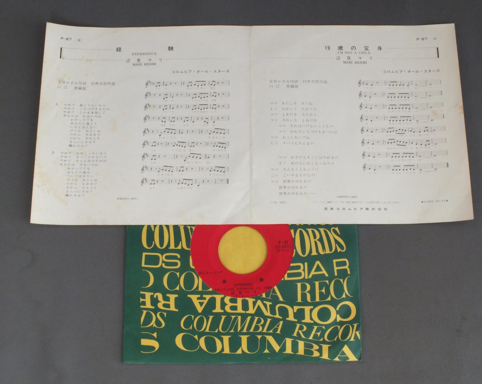 MARI HENMI辺見マリ/EXPERIENCE経験 P87 製造国:日本盤 / Media:7inch外観:EX-盤の状態:EX 価格(税込):¥550(売約済) 送料 7inch:定形外郵便 360円~LP:定形外郵便 660円~送料は、注文の最終画面で確認頂けます。 > > MARI HENMI/EXPERIENCE 外観 (EX-)特記事項:シミ有り外観EX-の共通説明:ダメージ軽度~多少。 中古品としては普通の状態。シミ、ヨゴレ、スレなど軽く~多少。 盤の状態 (EX)特記事項:薄いスリキズ・スレ軽くある感じ。軽微なものの様子です。盤EXの共通説明:盤面のスリキズが薄いものが少し~軽度 音に出そうなものは無いように見える(軽微なソフトティック音は除く)。 Tweet それぞれの画像をクリックすると、大きい写真が見られます こちらの商品もお勧めです 770円 CANDIESキャンディーズ / CANDY LABELキャンディ・レーベル 770円 KOICHI MORITA & TOP GALLANTS森田公一 & トップギャラン / BEST HITSヒット全曲集 1,980円 GOODBYE / FIFTH DIMENSION 880円 YUMI MATSUTOYA松任谷由実 / RE INCARNATIONリ・インカーネイション 1,210円 ALFIEアルフィー / GREENHORN ( VICTOR YEARS 1974-76 ) + OUTER COVERGREENHORN ( VICTOR YEARS 1974-76 ) + オリジナル外袋 1,210円 SNAKEMAN SHOWスネークマン・ショー / 急いで口で吸え! 440円 OFF COURSEオフコース / THREE AND TWOスリー・アンド・トゥ 770円 NOA HORIGUCHI堀ロノア / SHOKAN-BAKO書簡箱