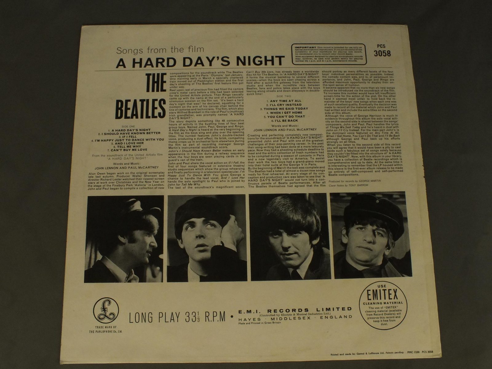 BEATLES/HARD DAY`S NIGHT 2EMI MARK GRAMOPHONE PCS3058 製造国:英国盤 / Media:LPMatrix: -1 / -1外観:EX盤の状態:EX 価格(税込):¥6,050(売約済) 送料 7inch:定形外郵便 360円~LP:定形外郵便 660円~送料は、注文の最終画面で確認頂けます。 > > BEATLES/HARD DAY`S NIGHT 2EMI MARK GRAMOPHONE 外観 (EX)特記事項:表ジャケは厚手のコーティング仕様。全体的にコーティングのヨレシワも少なめで、スレやスリキズ、よごれ等も少ない感じです。裏ジャケ側もよごれは薄い感じ。外観EXの共通説明:ダメージが限定的。中古品としては保存状態がよい方。シミ、ヨゴレ、スレ 少し~軽度。 盤の状態 (EX)特記事項:薄いスリキズ・スレ軽く有る感じ。殆どが軽微なものの様子で、きれいな印象。曲間など、静かなところを中心に聴いて見ましたが、チリノイズ少ないきれいな再生具合でした。盤EXの共通説明:盤面のスリキズが薄いものが少し~軽度 音に出そうなものは無いように見える(軽微なソフトティック音は除く)。 Tweet それぞれの画像をクリックすると、大きい写真が見られます こちらの商品もお勧めです 5,500円 GEORGE HARRISON / LIVING IN THE MATERIAL WORLD 5,500円 GEORGE HARRISON / THIRTY THREE & 1/3 4,950円 JOHN & YOKO - PLASTIC ONO BANDF / SOME TIME IN NEW YORK CITY 5,500円 JOHN LENNON / SHAVED FISH 5,500円 BEATLES / AT THE HOLLYWOOD BOWL