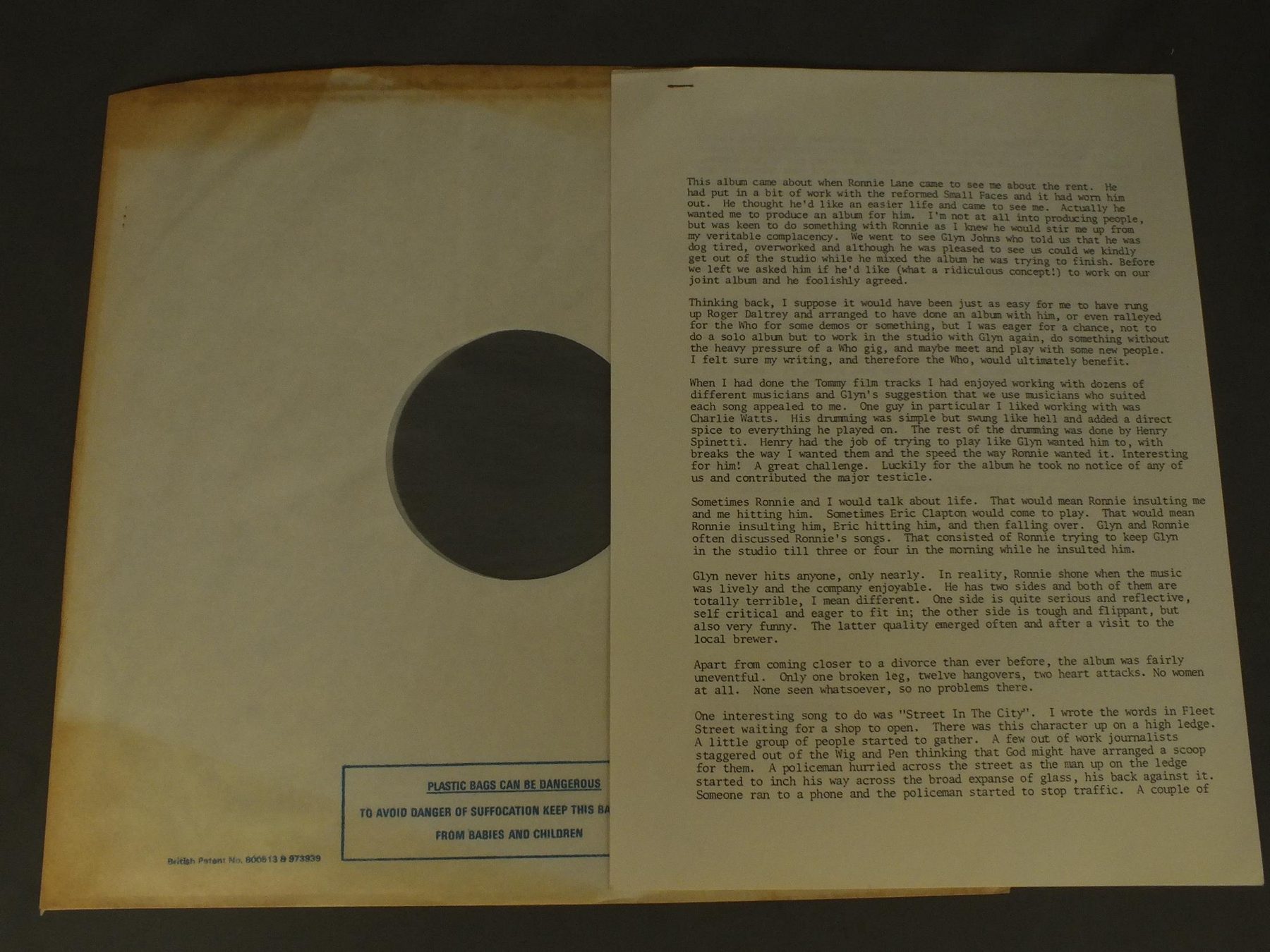 PETE TOWNSHEND & RONNIE LANE/LOUGH MIX + PROMO SHEET ( WRIITEN BY PETE TOWNSHED ) 2442147 製造国:英国盤 / Media:LPMatrix:A//1 B//1外観:EX盤の状態:EX+ 価格(税込):¥13,193(売約済) 送料 7inch:定形外郵便 360円~LP:定形外郵便 660円~送料は、注文の最終画面で確認頂けます。 レコード検索 > > PETE TOWNSHEND & RONNIE LANE/LOUGH MIX + PROMO SHEET ( WRIITEN BY PETE TOWNSHED ) 外観 (EX)特記事項:背上や見開きの上の方に薄いシミ軽少し。他は見開きも含めてジャケ表面は全体的にスレやスリキズ、よごれ等の少ない良い状態。全体的にしっかりした感じあります。POLYDOR PRESS OFFICE発行のピートの書いた解説付き。貴重なものです。外観EXの共通説明:ダメージが限定的。中古品としては保存状態がよい方。シミ、ヨゴレ、スレ 少し~軽度。 盤の状態 (EX+)特記事項:薄いスリキズ・スレ少しある程度。音に出そうなものもなく一見してきれいな状態です。曲間など、静かなところを中心にMONO針で聴いて見ましたが、チリノイズ少ないきれいな再生具合でした。盤EX+の共通説明:盤面の極薄いスリキズ、スレ少し程度 音に出そうなものは無いように見える(極軽微なソフトティック音は除く)。 Tweet それぞれの画像をクリックすると、大きい写真が見られます こちらの商品もお勧めです 3,300円 ABBA / GREATEST HITS 8,250円 FREE / AT LAST 4,950円 FREE / AT LAST 3,300円 ABBA / GREATEST HITS 8,250円 MARK BOLAN / BOLAN`S ZIP GUN 3,520円 PIGEON PIE / LIEUTENANT PIGEON 3,850円 BAD COMPANY / RUN WITH THE PACK 16,500円 GRAPEFRUIT / DEEP WATER