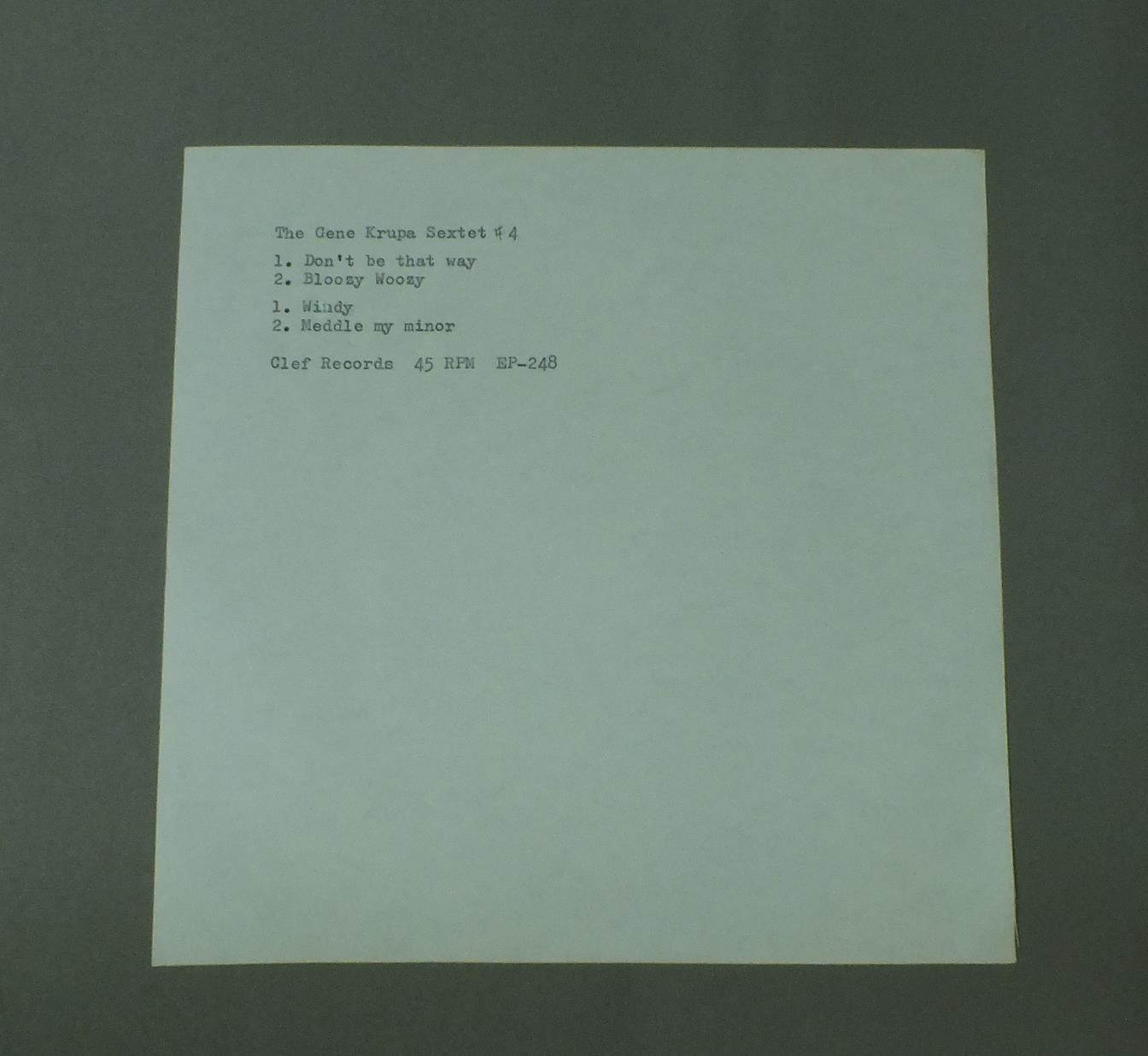GENE KRUPA/DON`T BE THAT WAY EP EP248 製造国:米国盤 / Media:7inch盤の状態:EX 価格(税込):¥880(売約済) 送料 7inch:定形外郵便 360円~LP:定形外郵便 660円~送料は、注文の最終画面で確認頂けます。 > > GENE KRUPA/DON`T BE THAT WAY EP 盤の状態 (EX)特記事項:薄いスリキズ・スレ軽くある感じ。プチ出そうなところは少しだけで、ほとんどが軽微なものの様子です。盤EXの共通説明:盤面のスリキズが薄いものが少し~軽度 音に出そうなものは無いように見える(軽微なソフトティック音は除く)。 Tweet それぞれの画像をクリックすると、大きい写真が見られます こちらの商品もお勧めです 1,100円 LOONIS McGLOHON / LOONIS IN LONDON 1,320円 RED NICHOLS AND HIS FIVE PENNIES / RED NICHOLS STORY 770円 RED NORVO / NORVO…NATURALLY ! 990円 CLANCY HAYES / SWINGIN` MINSTREL AUTOGRAPHED ( RALPH SUTTON )SWINGIN` MINSTREL (RALPH SUTTON サイン付) 1,210円 ALBERT NICHOLAS QUARTET / ART THE HODES NOTEBOOK 770円 RAINIER JAZZ BAND / LIVE AT MOM`S 990円 SING MILLER / MORE OLD TIMES WITH SING MILLERJEFF HAMILTONサイン付 990円 DICK CARY / AMAZING DICK CARY AUTOGRAPHEDRALPH SUTTONサイン付