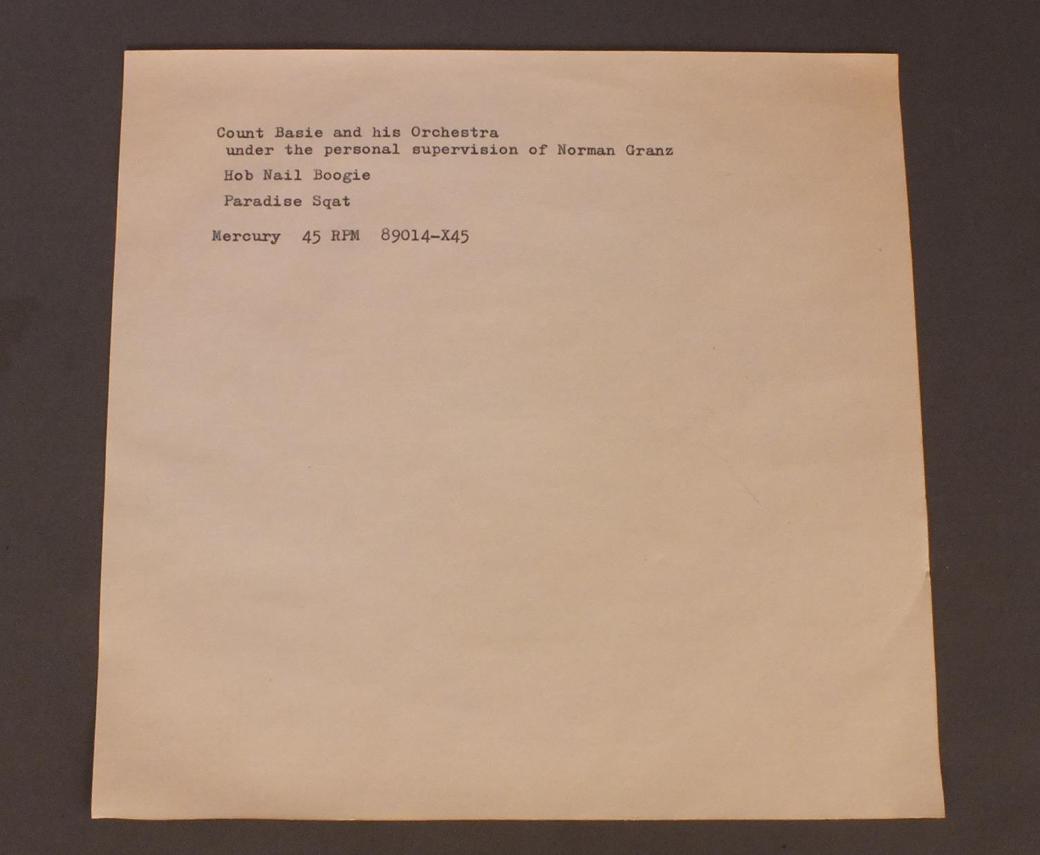 COUNT BASIE/HOB NAIL BOOGIE 89014X45 製造国:米国盤 / Media:7inch盤の状態:EX- 価格(税込):¥440(売約済) 送料 7inch:定形外郵便 360円~LP:定形外郵便 660円~送料は、注文の最終画面で確認頂けます。 > > COUNT BASIE/HOB NAIL BOOGIE 盤の状態 (EX-)特記事項:薄いスリキズ・細かい表面スレ多少ある感じ。殆どが軽微なものの様子です。盤EX-の共通説明:盤面のスリキズが多少有り。音に出そうなものは殆ど無いように見える~さほど気にならないぐらいの軽いプチ数カ所程度。 Tweet それぞれの画像をクリックすると、大きい写真が見られます こちらの商品もお勧めです 770円 ANDY KIRK AND HIS CLOUDS OF JOY / INSTRUMENTALLY SPEKING 1936 & 42 1,210円 MONTE BALLOU AND HIS NEW CASTLE JAZZ BAND / THEY`RE MOVING WILLIE`S GRAVE TO DIG A SEWER (BUTCH THOMPSON AUTOGRAPHED )THEY`RE MOVING WILLIE`S GRAVE TO DIG A SEWER(BUTCH THOMPSONサイン付) 770円 HARRY JAMES AND HIS MUSIC MAKERS / SPOTLIGHT ON HARRY JAMES 880円 BENNY GOODMAN & CHARLIE BARNET / BENNY GOODMAN ( 1939 ) - CHARLIE BARNET ( 1938-41 ) 770円 LES BROWN & HIS BAND OF RENOWN / SWINGIN` SOUND 1,540円 BENNY GOODMAN / BENNY GOODMAN AND THE GIANTS OF SWING 1,210円 YANK LAWSON & BOB HAGGART / WHAT`S NEW AUTOGRAPHEDWHAT`S NEW RALPH SUTTONサイン付 770円 LIONEL HAMPTON / LIONEL HAMPTON&HIS BIG BAND `OUTRAGEOUS`