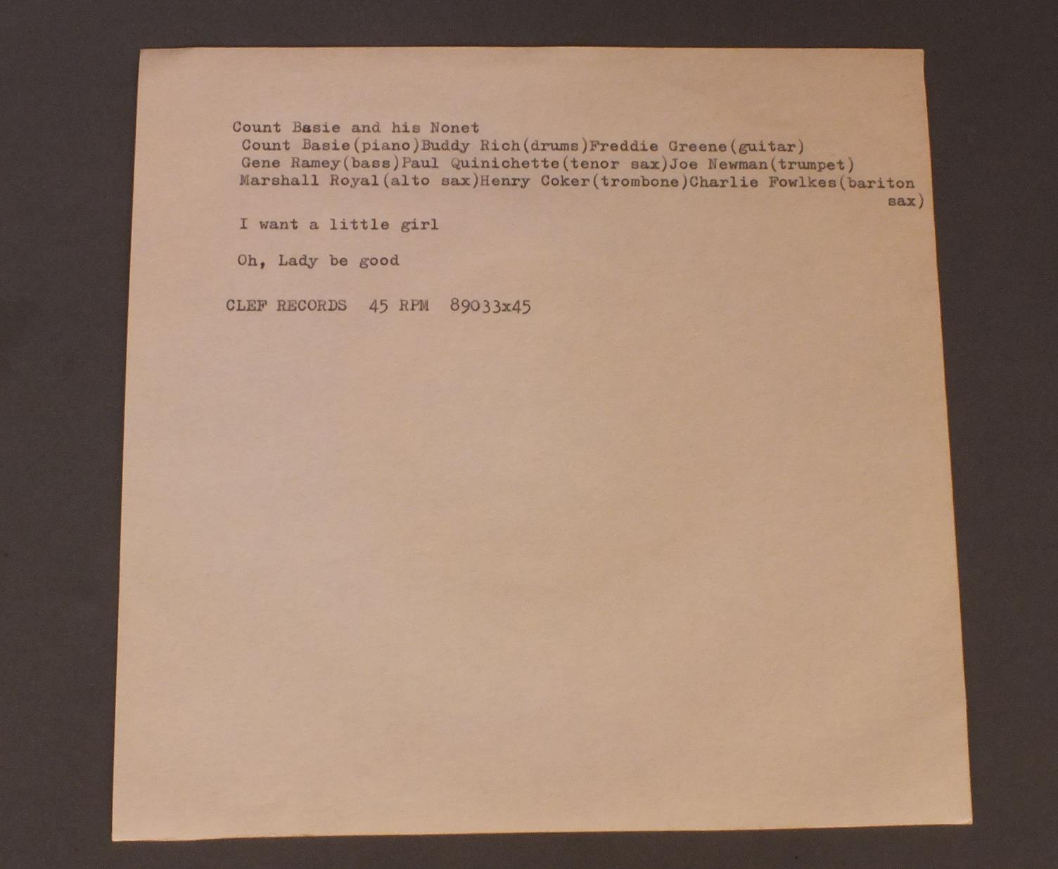 COUNT BASIE AND HIS NONET/I WANT A LITTLE GIRL 89033X45 製造国:米国盤 / Media:7inch盤の状態:EX 価格(税込):¥440(売約済) 送料 7inch:定形外郵便 360円~LP:定形外郵便 660円~送料は、注文の最終画面で確認頂けます。 > > COUNT BASIE AND HIS NONET/I WANT A LITTLE GIRL 盤の状態 (EX)特記事項:薄いスリキズ・スレ軽くある感じ。殆どが軽微なものの様子です。盤EXの共通説明:盤面のスリキズが薄いものが少し~軽度 音に出そうなものは無いように見える(軽微なソフトティック音は除く)。 Tweet それぞれの画像をクリックすると、大きい写真が見られます こちらの商品もお勧めです 660円 LIONEL HAMPTON / ONE NIGHT STAND WITH LIONEL HAMPTON CULVER CITY 1944 1,320円 YANK LAWSON AND BOB HAGGART / WORLD`S GREATEST JAZZBAND 1,210円 HARRY JAMES etc / BIG BANDS GREATEST HITS VOLUME 2 1,540円 LIONEL HAMPTON / THERE IT IS ! 660円 SAMMY KAYE AND HIS ORCHESTRA / 22 ORIGINAL BIG BAND RECORDING 1,210円 WORLD`S GREATEST JAZZ BAND OF YANK LAWSON AND BOB HAGGART / LIVE AT THE ROOSEVELT GRILL(RALPH SUTTON AUTOGRAPHED)LIVE AT THE ROOSEVELT GRILL(RALPH SUTTONサイン付) 770円 HARRY JAMES AND HIS MUSIC MAKERS / SPOTLIGHT ON HARRY JAMES 1,540円 BENNY GOODMAN / BENNY GOODMAN AND THE GIANTS OF SWING