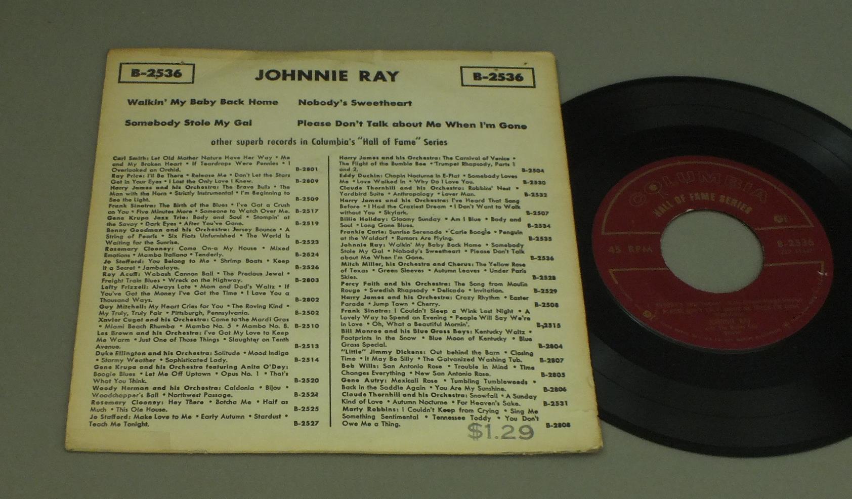 JOHNNIE RAY/WALKIN` MY BABY BACK HOME B2536 製造国:米国盤 / Media:7inch外観:VG盤の状態:EX- 価格(税込):¥550(売約済) 送料 7inch:定形外郵便 360円~LP:定形外郵便 660円~送料は、注文の最終画面で確認頂けます。 > > JOHNNIE RAY/WALKIN` MY BABY BACK HOME 外観 (VG)特記事項:背下や上ヘリに割れ。テープ補修。裏側下部にスタンプ。外観VGの共通説明:ダメージが見るからに多い。 盤の状態 (EX-)特記事項:薄いスリキズ・細かい表面スレ軽くある感じ。全体的には殆どが軽微なものの様子です。盤EX-の共通説明:盤面のスリキズが多少有り。音に出そうなものは殆ど無いように見える~さほど気にならないぐらいの軽いプチ数カ所程度。 Tweet それぞれの画像をクリックすると、大きい写真が見られます こちらの商品もお勧めです 770円 GARY BENSON / MOONLIGHT WALKING 5,500円 NEIL YOUNG / AT THE LOS ANGELES MUSIC CENTER 550円 EDDIE RABBITT / HORIZON 1,320円 JOHN WILLIAMS / HEIGHT BELOW 770円 ROBBIE NEVIL / PLACE LIKE THIS 770円 CHARLIE RICH / NOBODY BUT YOU 660円 REINER SUB / LIEDER BEIM WEIN 5,500円 NEIL YOUNG / BBC BROADCAST