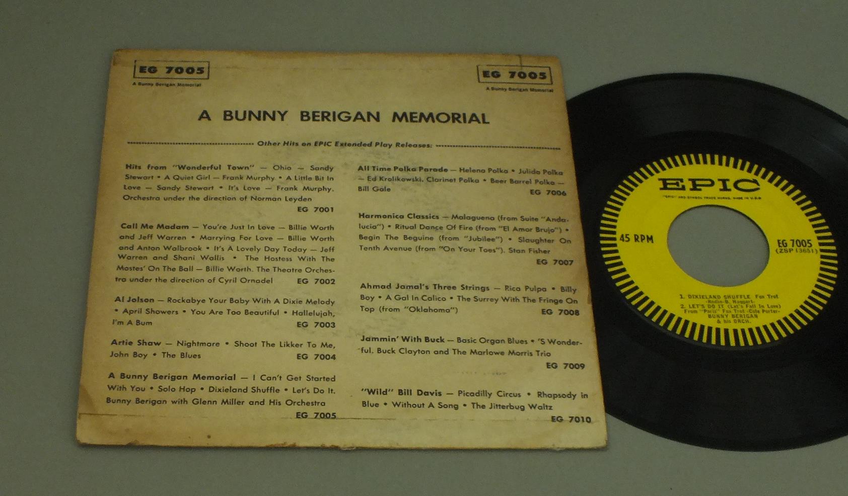 BUNNY BERIGAN/BUNNY BERIGAN MEMORIAL EG7005 製造国:米国盤 / Media:7inch外観:VG盤の状態:EX- 価格(税込):¥550(売約済) 送料 7inch:定形外郵便 360円~LP:定形外郵便 660円~送料は、注文の最終画面で確認頂けます。 > > BUNNY BERIGAN/BUNNY BERIGAN MEMORIAL 外観 (VG)特記事項:背抜け、上下の割れに接着補修。日焼感有り。外観VGの共通説明:ダメージが見るからに多い。 盤の状態 (EX-)特記事項:薄いスリキズ・細かい表面スレ軽くある感じ。全体的には殆どが軽微なものの様子です。盤EX-の共通説明:盤面のスリキズが多少有り。音に出そうなものは殆ど無いように見える~さほど気にならないぐらいの軽いプチ数カ所程度。 Tweet それぞれの画像をクリックすると、大きい写真が見られます こちらの商品もお勧めです 1,650円 MODAN JAZZ QUARTET / THE SHERIFF 880円 MAX KAMINSKY / NEW ORLEANS DIXIELAND JAZZ 770円 JIM GALLOWAY`S WEE BIG BAND / KEEP THE RHYTHM GOING 1,100円 REX STEWART / AND THE ELLINGTONIANS 1,540円 BOB WILBER-KENNY DAVERN / SOPRANO SUMMIT LIVE AT CONCORD `77 AUTOGRAPHEDSOPRANO SUMMIT LIVE AT CONCORD `77 サイン付 550円 JOE SULLIVAN / PIANO MAN 1935-1940 880円 PAUL RENARD / MANY KEYBOARDS OF THE AMAZING PAUL RENARD 1,210円 RALPH SUTTON etc / JAZZ IN THE TROC(RALPH SUTTON AUTOGRAPHED)JAZZ IN THE TROC(RALPH SUTTONサイン付)