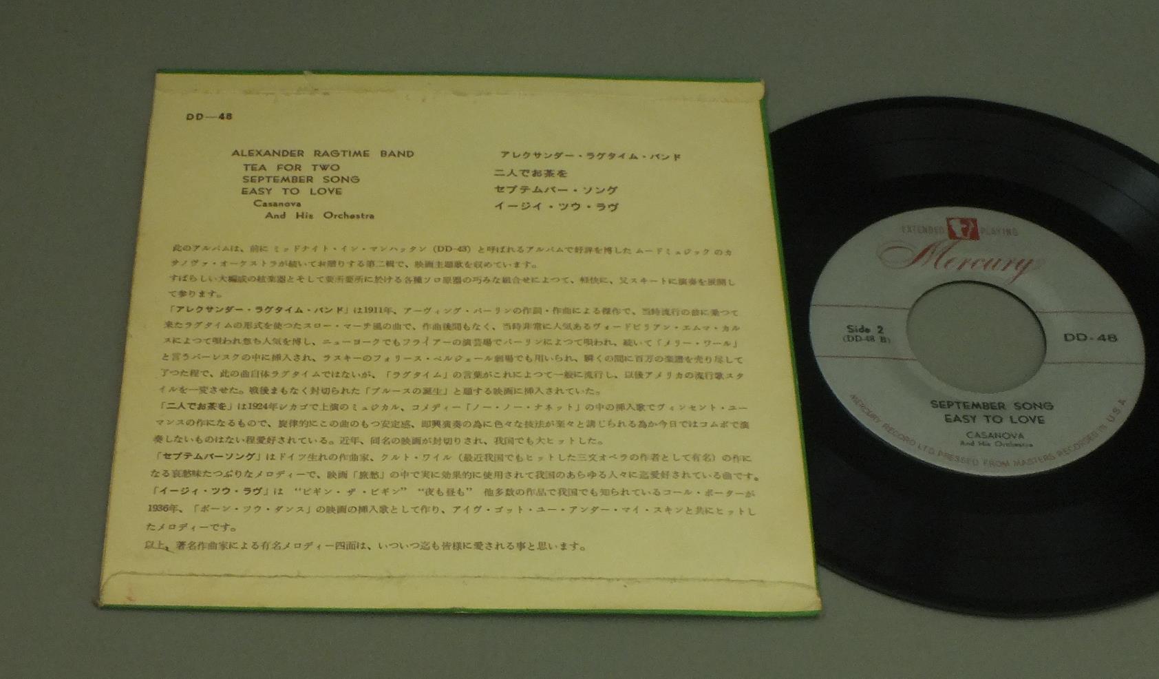 ALEXANDER RAGTIME BANDアレクサンダー・ラグタイム・バンド/MIDNIGHT IN MANHATTAN VOL2ミッドナイト・イン・マンハッタン 第2集 DD48 製造国:日本盤 / Media:7inch外観:EX-盤の状態:EX- 価格(税込):¥880(売約済) 送料 7inch:定形外郵便 360円~LP:定形外郵便 660円~送料は、注文の最終画面で確認頂けます。 > > ALEXANDER RAGTIME BAND/MIDNIGHT IN MANHATTAN VOL2 外観 (EX-)特記事項:ヨレや薄いヨゴレ有り。外観EX-の共通説明:ダメージ軽度~多少。 中古品としては普通の状態。シミ、ヨゴレ、スレなど軽く~多少。 盤の状態 (EX-)特記事項:薄いスリキズ・細かい表面スレ軽くある感じ。全体的には殆どが軽微なものの様子です。盤EX-の共通説明:盤面のスリキズが多少有り。音に出そうなものは殆ど無いように見える~さほど気にならないぐらいの軽いプチ数カ所程度。 Tweet それぞれの画像をクリックすると、大きい写真が見られます こちらの商品もお勧めです 990円 CHARLIE PARKERチャーリー・パーカー / CHARLIE PARKER ON SAVOY VOL4チャーリー・パーカー・オン・サヴォイVOL4 770円 NORIO MAEDA前田憲男 / FEELINGSフィーリング 1,320円 SHIRO MICHI道志郎 / WONDERFUL WORLD OF ELECTONEエレクトーンの驚異 770円 SADAO WATANABE渡辺貞夫 / MY DEAR LIFEマイ・ディア・ライフ 1,210円 HERBIE MANNハービー・マン / GLORY OF LOVEグローリー・オブ・ラヴ 1,320円 LOUIS ARMSTRONG & HIS ALL-STARSルイ・アームストロング・オールスターズ / PLAYS W.C.HANDYプレイズ・W.C.ハンディ 990円 HOZAN YAMAMOTO山本邦山 / FYMN OF BUDDHA声明に挑む 1,210円 SONNY STITT WITH QUINCY JONES ORCHETRAソニー・スティット・クインシージョーンズ オーケストラ / SAME TITLE