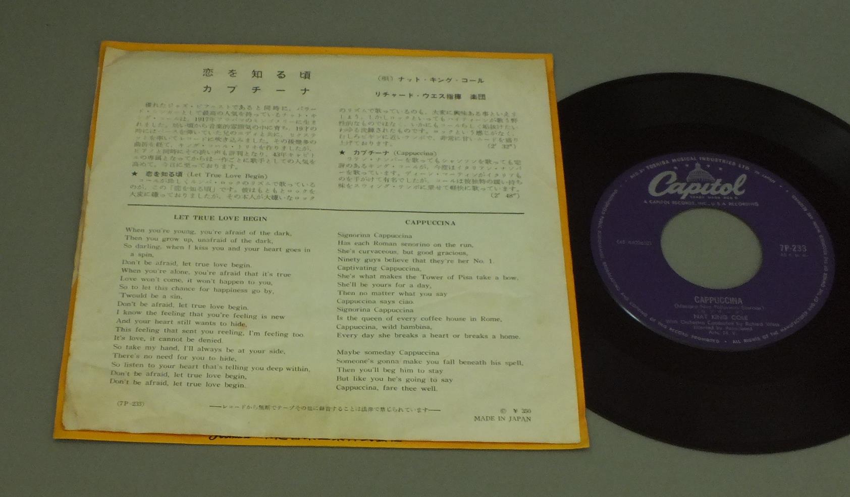 NAT KING COLEナット・キング・コール/LET TRUE LOVE BEGIN恋を知る頃 7P233 製造国:日本盤 / Media:7inch外観:EX-盤の状態:VG+ 価格(税込):¥550(売約済) 送料 7inch:定形外郵便 360円~LP:定形外郵便 660円~送料は、注文の最終画面で確認頂けます。 > > NAT KING COLE/LET TRUE LOVE BEGIN 外観 (EX-)特記事項:ヨレやシミ。外観EX-の共通説明:ダメージ軽度~多少。 中古品としては普通の状態。シミ、ヨゴレ、スレなど軽く~多少。 盤の状態 (VG+)特記事項:薄いスリキズ・細かいスレ多少。全体的には軽微なものが中心です。少し聴いてみましたが、音自体はしっかりクリアーに鳴っているようでした。盤VG+の共通説明:盤面にスリキズが多少~やや有り、音に出そうなものも多少ある。 Tweet それぞれの画像をクリックすると、大きい写真が見られます こちらの商品もお勧めです 1,650円 NAMI HIDAKA日高なみ / NAMI HIDAKA AUTOGRAPHED日高なみ サイン付 770円 BRENDA LEEブレンダ・リー / BEST OF BRENDA LEEブレンダ・リー大全集 1,320円 DINAH WASHINGTONダイナ・ワシントン / DINAH JAMSウィズ・クリフォード・ブラウン 990円 MAHALIA JACKSONマヘリア・ジャクソン / MAHALIA JACKSON STORYマヘリア・ジャクソン・ストーリー 990円 MARI NAKAMOTO中本マリ / LOVE TOUCHLOVE TOUCH 880円 YASUKO AGAWA阿川泰子 / FINE!気分はいかが 1,210円 BUDDY GRECOバディ・グレコ / MY BUDDY ( RECORDED AT LE BISTRO RUSH STREET CHICAGO )マイ・バディ (シカゴ ラッシュ・ストリート ル・ビストロにおける実況録音) 1,320円 MATT DENNISマット・デニス / DENNIS ANYONE?デニス・エニワン
