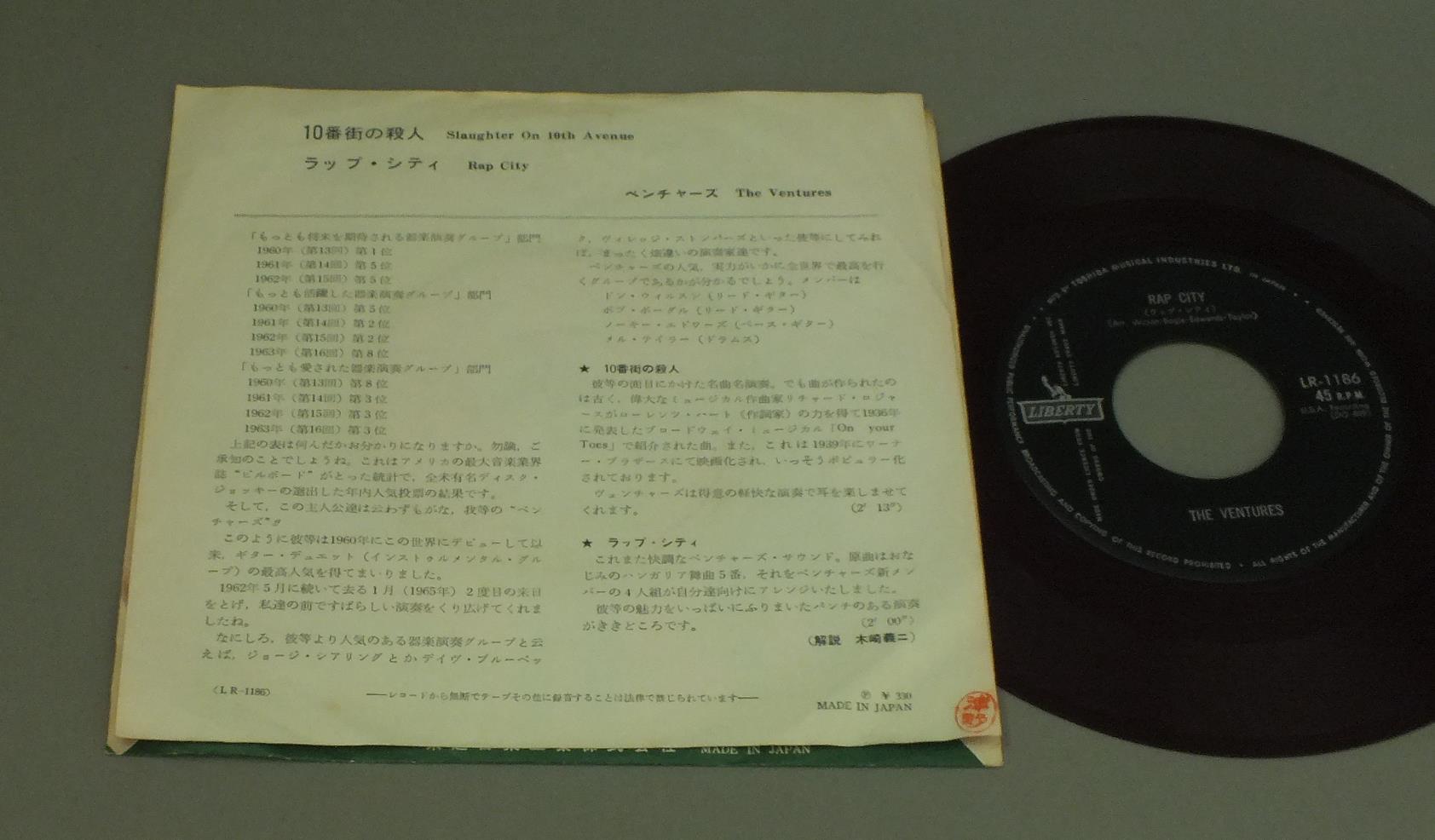 VENTURESベンチャーズ/SLAUGHTER ON 10TH AVENUE10番街の殺人 LR1186 製造国:日本盤 / Media:7inch外観:EX-盤の状態:EX- 価格(税込):¥330 送料 7inch:定形外郵便 360円~LP:定形外郵便 660円~送料は、注文の最終画面で確認頂けます。 > > VENTURES/SLAUGHTER ON 10TH AVENUE 外観 (EX-)特記事項:ヨレやシミ。裏側に印外観EX-の共通説明:ダメージ軽度~多少。 中古品としては普通の状態。シミ、ヨゴレ、スレなど軽く~多少。 盤の状態 (EX-)特記事項:薄いスリキズ・細かい表面スレ多少ある感じ。殆どが軽微なものの様子です。盤EX-の共通説明:盤面のスリキズが多少有り。音に出そうなものは殆ど無いように見える~さほど気にならないぐらいの軽いプチ数カ所程度。 Tweet それぞれの画像をクリックすると、大きい写真が見られます こちらの商品もお勧めです 1,210円 ELVIS PRESLEY / ELVIS AS RECORDED AT MADISON SQUARE GARDENエルヴィス・イン・ニューヨーク 1,210円 EVERLY BROTHERSエヴァリー・ブラザース / DATE WITH EVERY BROTHERSデイト・ウィズ・エヴァリー・ブラザーズ 990円 VENTURESベンチャーズ / IN CHRISTMASイン・クリスマス 770円 ELVIS PRESLEYエルヴィス・プレスリー / ELVIS-THAT`S THE WAY IT ISこの胸のときめきを -MGM映画 エルヴィス・オン・ステージ 主題歌集 880円 VENTURESベンチャーズ / JOYジョイ -ディスカバー・クラシック- 990円 VENTURESベンチャーズ / ON STAGE ENCOREオン・ステージ・アンコール 1,210円 VENTURES / BEST OF THE VENTURES vol.2 RED VINYL赤盤 1,320円 ELVIS PRESLEY / THAT`S THE WAY IT ISこの胸のときめきを