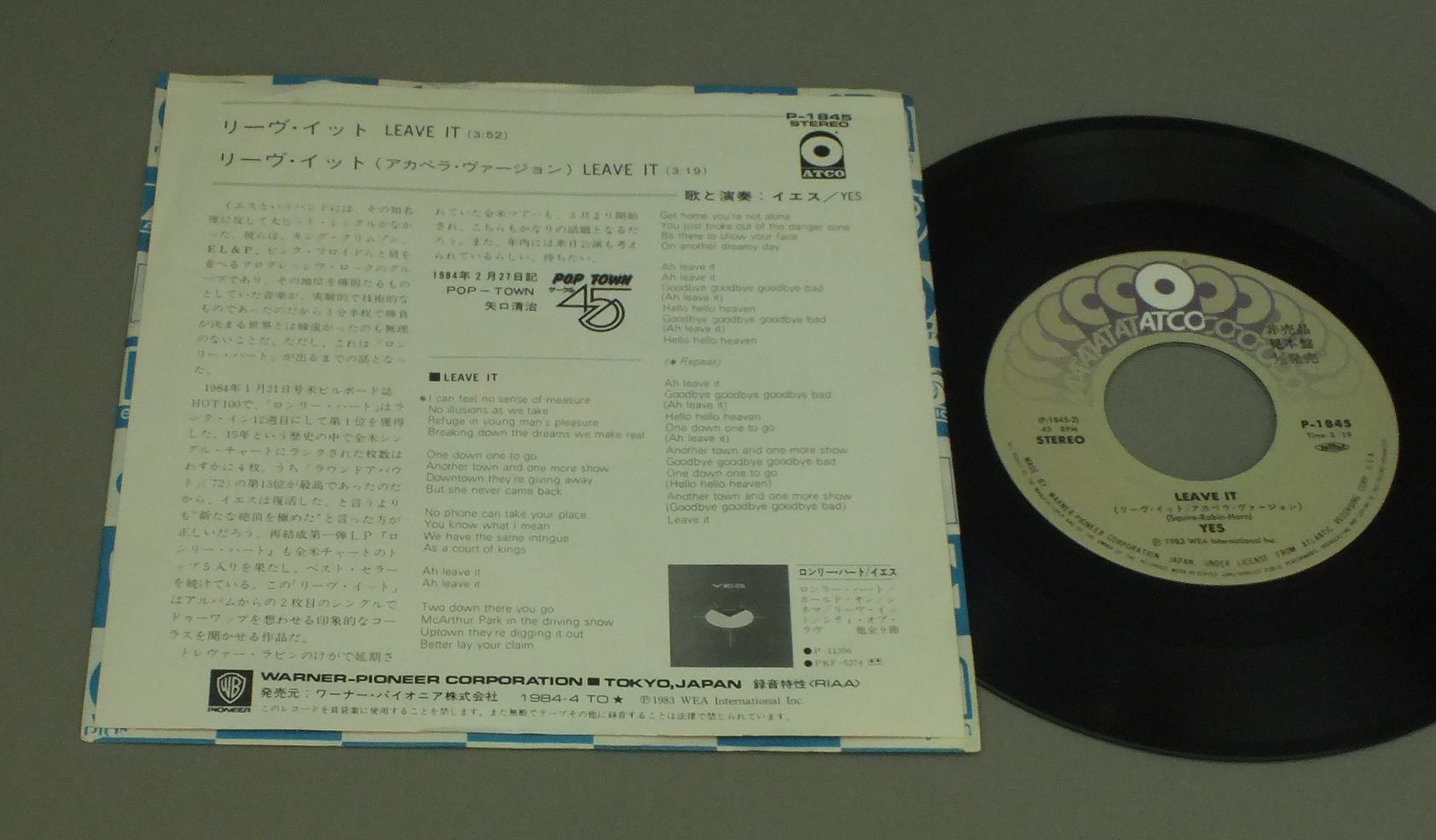 YESイエス/LEAVE ITリーヴ・イット P1845 製造国:日本盤 / Media:7inch外観:EX盤の状態:EX+ 価格(税込):¥330(売約済) 送料 7inch:定形外郵便 360円~LP:定形外郵便 660円~送料は、注文の最終画面で確認頂けます。 > > YES/LEAVE IT 外観 (EX)特記事項:ヨレ有り。外観EXの共通説明:ダメージが限定的。中古品としては保存状態がよい方。シミ、ヨゴレ、スレ 少し~軽度。 盤の状態 (EX+)特記事項:薄いスリキズ・スレ少し。一見してきれいな状態です。盤EX+の共通説明:盤面の極薄いスリキズ、スレ少し程度 音に出そうなものは無いように見える(極軽微なソフトティック音は除く)。 その他:見本盤 Tweet それぞれの画像をクリックすると、大きい写真が見られます こちらの商品もお勧めです