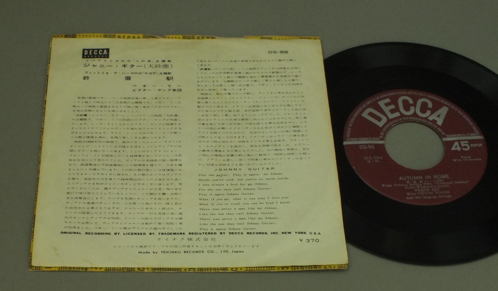 PEGGY LEEペギー・リー/JOHNEY GUITARジャニー・ギター DS98 製造国:日本盤 / Media:7inch外観:VG+盤の状態:VG+ 価格(税込):¥2,750(売約済) 送料 7inch:定形外郵便 360円~LP:定形外郵便 660円~送料は、注文の最終画面で確認頂けます。 > > PEGGY LEE/JOHNEY GUITAR 外観 (VG+)特記事項:ヨレやシミ。外観VG+の共通説明:ダメージやや有り。シミ、ヨゴレ、スレなど多少~やや多め。 盤の状態 (VG+)特記事項:薄いスリキズ・細かいスレやや多め。プチ出そうな小キズ、線キズは数カ所で、全体的には軽微なものが中心です。少し聴いてみましたが、音自体はしっかりクリアーに鳴っているようでした。盤VG+の共通説明:盤面にスリキズが多少~やや有り、音に出そうなものも多少ある。 Tweet それぞれの画像をクリックすると、大きい写真が見られます こちらの商品もお勧めです 1,320円 BUDDY GRECOバディ・グレコ / AT MISTER KELLY`Sアット・ミスター・ケリーズ 660円 WOODY HERMAN AND HIS ORCHESTRAウディ・ハーマン・オーケストラ / BLUE FLAMEブルー・フレーム 770円 BRENDA LEEブレンダ・リー / NEW EXCELLENTニュー・エクセレント 440円 BING CROSBYビング・クロスビー / BING CROSBY GOLDEN DISC追悼盤 1,980円 ANLI SUGANOアンリ菅野 / SWEET MEMORY SPECIAL DJ COPYスイート・メモリー SPECIAL DJ COPY 770円 SWINGLE SINGERSスイングル・シンガーズ / JAZZ SEBASTIEN BACHジャズ・セバスチャン・バッハ 1,210円 SINGERS UNLIMITEDシンガーズ・アンリミテッド / A CAPELLA 3ア・カペラ? 770円 BUDDY GRECOバディ・グレコ / HERE`S BUDDY GRECOヒアーズ・バディ・グレコ