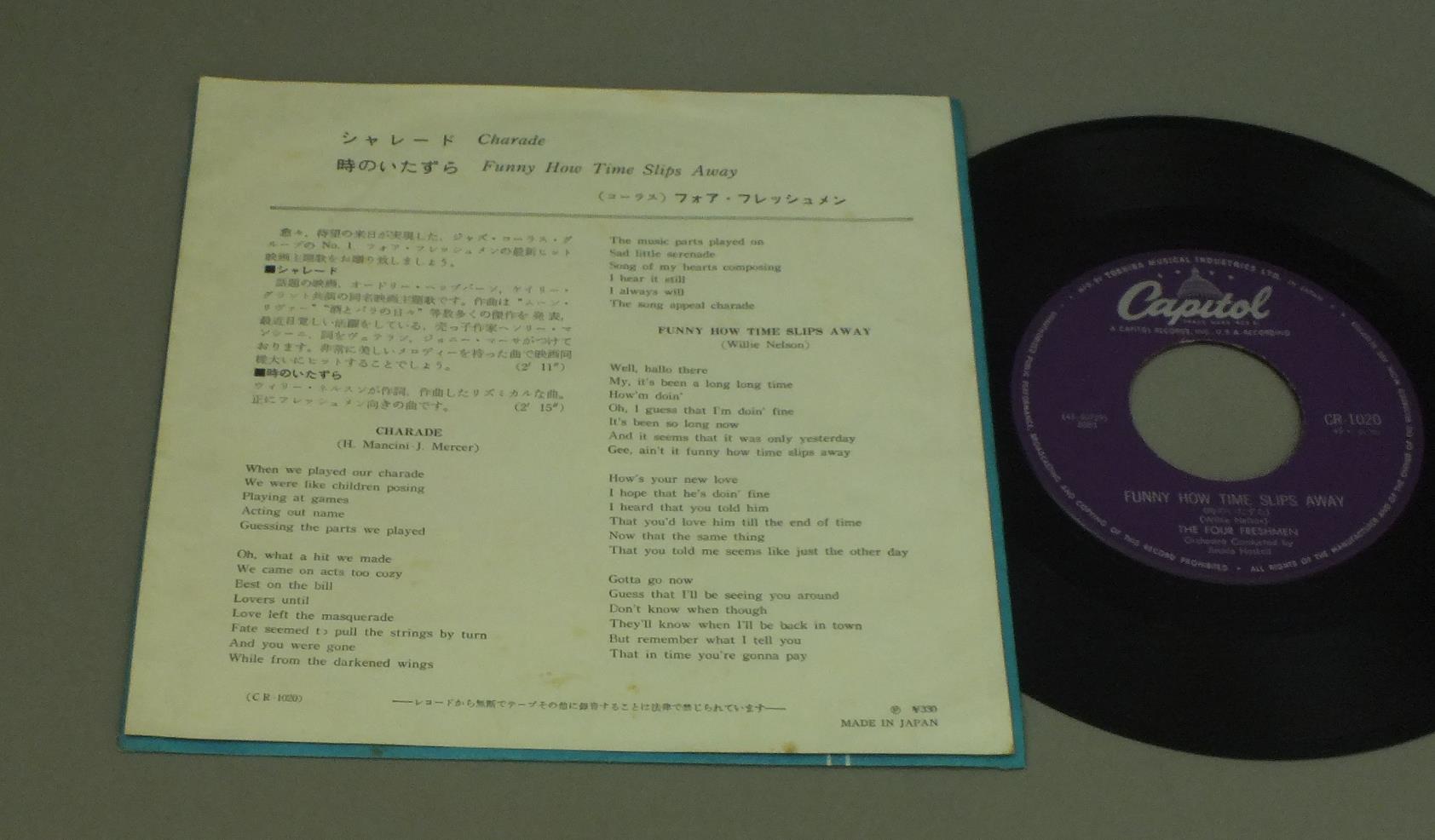FOUR FRESHMENフォア・フレッシュメン/CHARADEシャレード CR1020 製造国:日本盤 / Media:7inch外観:EX-盤の状態:EX- 価格(税込):¥550(売約済) 送料 7inch:定形外郵便 360円~LP:定形外郵便 660円~送料は、注文の最終画面で確認頂けます。 > > FOUR FRESHMEN/CHARADE 外観 (EX-)特記事項:ヨレやシミ。外観EX-の共通説明:ダメージ軽度~多少。 中古品としては普通の状態。シミ、ヨゴレ、スレなど軽く~多少。 盤の状態 (EX-)特記事項:薄いスリキズ・細かい表面スレ多少ある感じ。殆どが軽微なものの様子です。盤EX-の共通説明:盤面のスリキズが多少有り。音に出そうなものは殆ど無いように見える~さほど気にならないぐらいの軽いプチ数カ所程度。 Tweet それぞれの画像をクリックすると、大きい写真が見られます こちらの商品もお勧めです 770円 SWINGLE SINGERSスイングル・シンガーズ / JAZZ SEBASTIEN BACHジャズ・セバスチャン・バッハ 770円 KANEKO HARUMI金子晴美 / SPECIAL MENU 1,650円 NAMI HIDAKA日高なみ / NAMI HIDAKA AUTOGRAPHED日高なみ サイン付 1,650円 SHORTY ROGERSショーティ・ロジャース・アンド・ヒズ・ジャイアンツ / BIG SHORTY ROGERS EXPRESSビッグ・ショーティ・エクスプレス 1,320円 BUDDY GRECOバディ・グレコ / AT MISTER KELLY`Sアット・ミスター・ケリーズ 990円 BRENDA LEEブレンダ・リー / GREAT HITS OF BRENDA LEEブレンダ・リー大全集 1,320円 SAMMY DAVIS JR & CARMEN MCRAEサミー・ディヴィス・ジュニア & カーメン・マクレエ / BOY MEETS GIRLボーイ・ミーツ・ガール 1,320円 DINAH WASHINGTONダイナ・ワシントン / DINAH JAMSウィズ・クリフォード・ブラウン