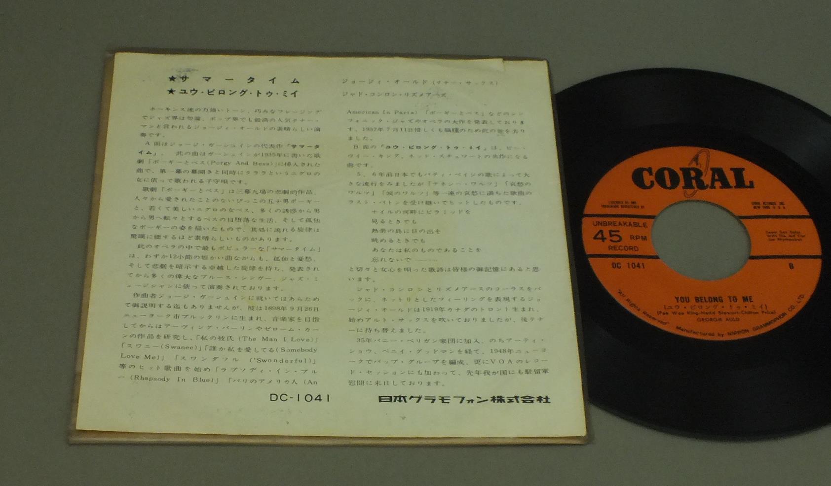 GEORGE AULDジョージィ・オールド/SUMMER TIMEサマータイム DC1041 製造国:日本盤 / Media:7inch外観:VG+盤の状態:VG+ 価格(税込):¥440(売約済) 送料 7inch:定形外郵便 360円~LP:定形外郵便 660円~送料は、注文の最終画面で確認頂けます。 > > GEORGE AULD/SUMMER TIME 外観 (VG+)特記事項:ヨレやシミ。上部に破れ小。外観VG+の共通説明:ダメージやや有り。シミ、ヨゴレ、スレなど多少~やや多め。 盤の状態 (VG+)特記事項:薄いスリキズ・細かいスレ多少。プチ出そうな小キズ、線キズも有ります。少し聴いてみましたが、音自体はしっかりクリアーに鳴っているようでした。盤VG+の共通説明:盤面にスリキズが多少~やや有り、音に出そうなものも多少ある。 Tweet それぞれの画像をクリックすると、大きい写真が見られます こちらの商品もお勧めです 990円 SHOJI SUZUKI & HIS RHYTHM ACES鈴木章治とリズム・エース / SUZUKAKE NO MICHI新・鈴懸の径 1,210円 LENNY WHITEレニー・ホワイト / STREAMLINEストリームライン 770円 RONNELL BRIGHTロンネル・ブライト / BRIGHT FLIGHTブライト・フライ 1,210円 ERIC DOLPHYエリック・ドルフィー / LAST DATEラスト・レコーディング 1,210円 FLETCHER HENDERSON & HIS ORCHESTRAフレッチャー・ヘンダーソン / FIRST IMPRESSIONS VOL1 (1924-1931)ファースト・インプレッションズ VOL1 (1924-1931) 880円 NEWPORT ALL STARSニューポート・オールスターズ / TRIBUTE TO DUKE ( LIVE IN BASEL SWISS 1969 OCT )デューク・エリントンに捧ぐ 1,210円 THAD JONES & MEL LEWISサド・ジョーンズ&メル・ルイス・オーケストラ / POTPOURRIポプーリ 1,320円 QUINCY JONESクィンシー・ジョーンズ / THIS IS HOW I FEEL ABOUT JAZZ私の考えるジャズ